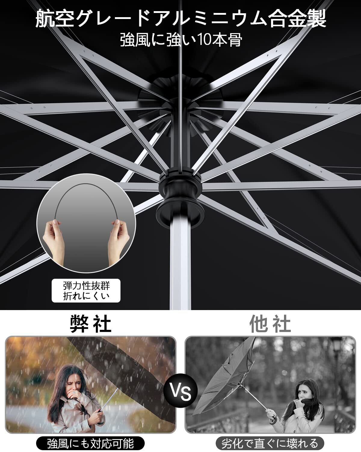 【10本骨強化型&強風耐久性】新作晴雨兼用傘が遂に登場しました!これは男性の要望に応えた究極のメンズ傘です。柔軟性と強度を兼ね備えた10本骨を採用し、通常の8本骨を持つ傘と比較して、風に対する耐性と耐久性が向上しています。さらに、錆びにくい防食加工が施された傘のフレームは非常に頑丈で、強風や激しい雨にも耐えることができ、折れたり曲がったりしにくい設計です。