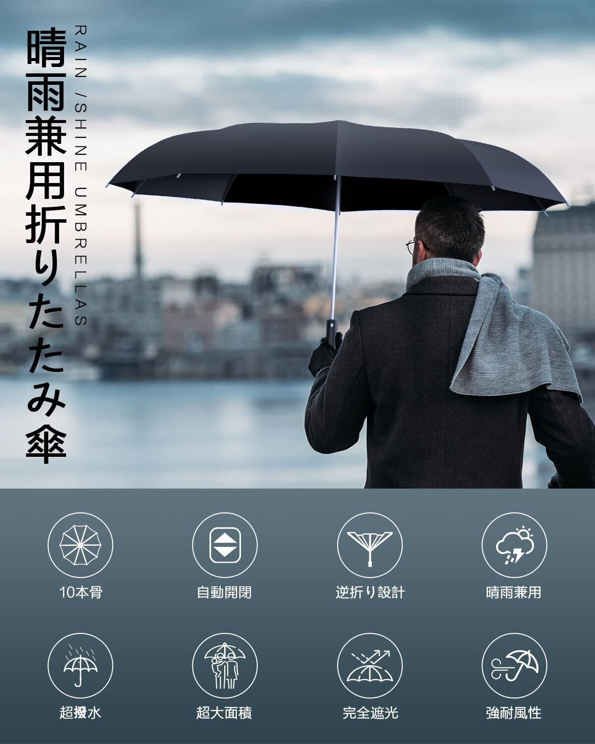 折りたたみ傘 逆折り式傘 折り畳み傘 日傘 ワンタッチ 自動開閉 メンズ 大きい 10本骨 耐強風設計 男子日傘 UVカット 晴雨兼用 梅雨対策 台風対応 紫外線遮蔽 収納ポーチ付き メンズ レディース