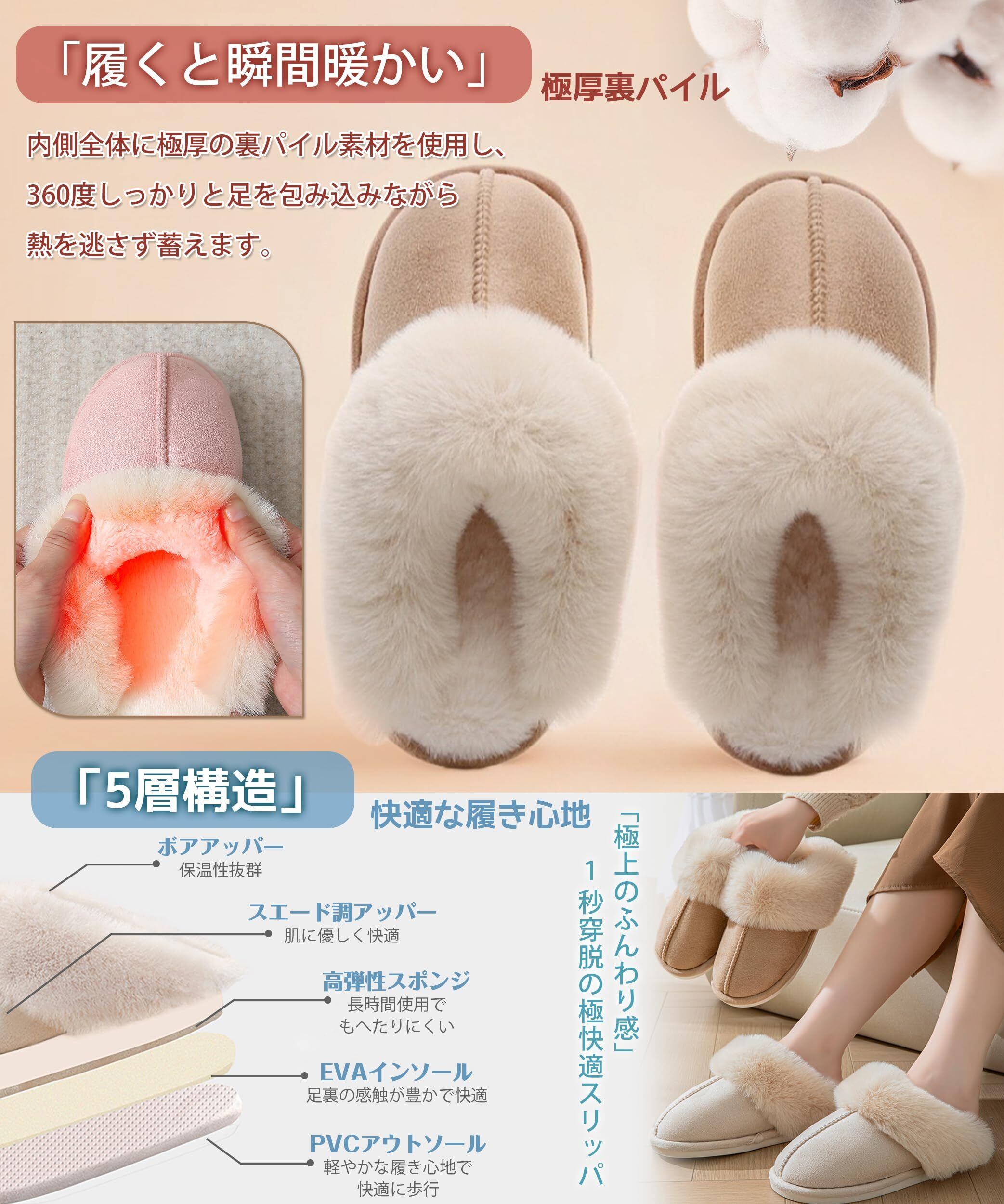 [Lavento] スリッパ 冬用 ルームシューズ モコモコ 【履くと瞬間暖かい・極厚裏パイル・極上のふんわり感】 スリッパ 室内 ルームシューズ 来客用 暖かい 防寒 保温 消臭 かわいい 低反発 滑り止め 厚底 洗濯可 男女兼用