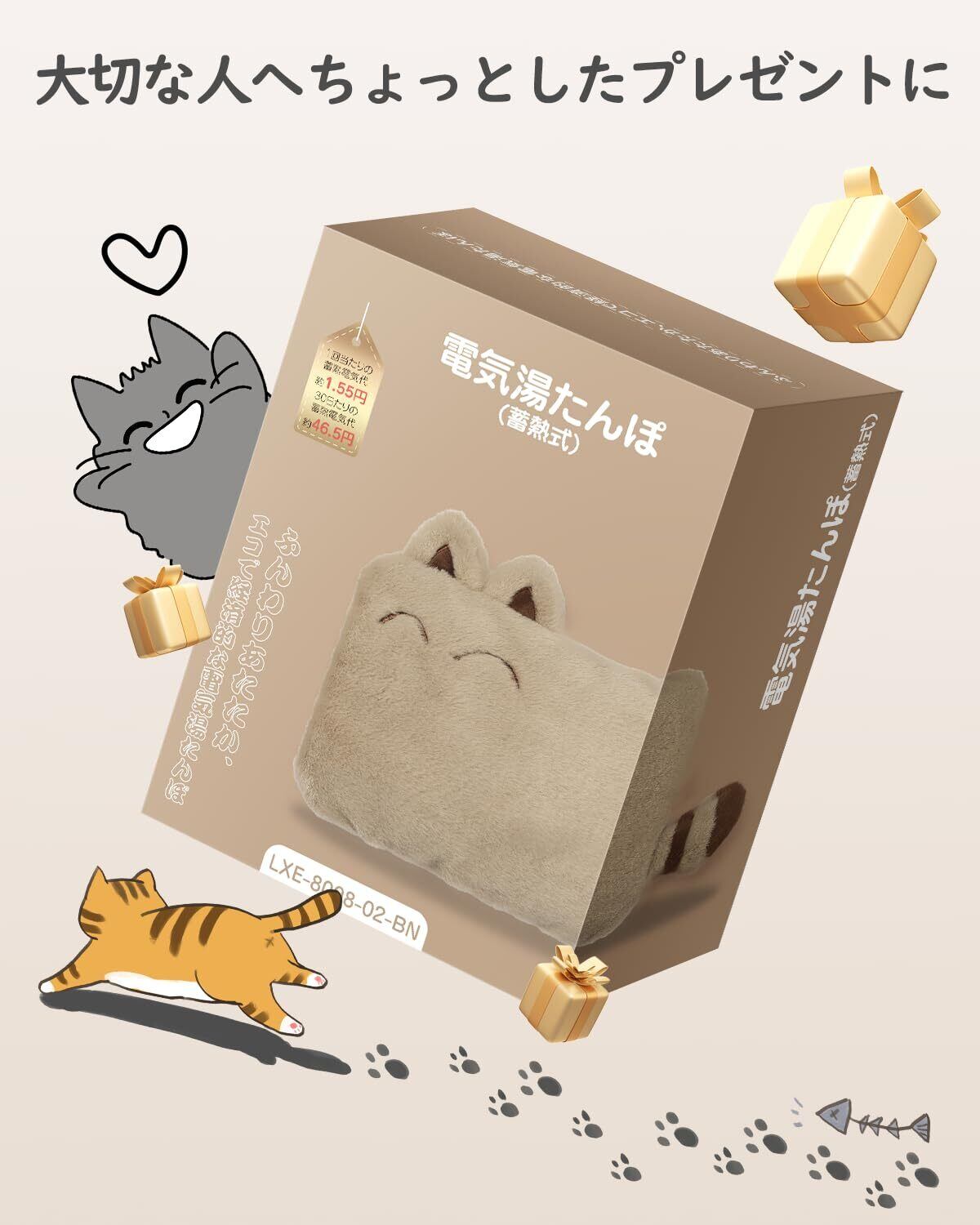 【2024年冬の新作、キュートで癒しのネコちゃん 湯たんぽ】わずか8~15分の蓄熱で温かさが長時間持続するエコな湯たんぽ。室内での使用で温かさは約4~8時間、布団内の使用は約8~12時間持続するため、寒い夜も一晩中安心できます。また、電気代が気になるこれからの季節にコストが圧倒的に安いです!1回の充電にかかるランニングコストもわずか1.55円と低く、再利用可能で環境に配慮した持続可能な商品としても注目されています。お腹に湯たんぽを当てると、暖められた血液が全身をめぐって、時間をかけて体の芯からじわじわと温まり、体全体がぽかぽかします。乾燥や電気代が気になるあなたへ、自然な温もりをお届けします。