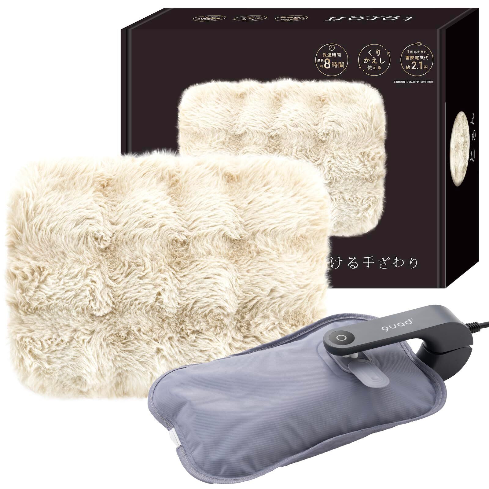 QUADS(クワッズ) とろける手ざわり 蓄熱湯たんぽ toron トロン ラビットファー エコ 省エネ 蓄熱10分 最大8時間あたたかさ持続 お湯交換不要 洗濯OK コードレス カイロ あんか (アイボリー)