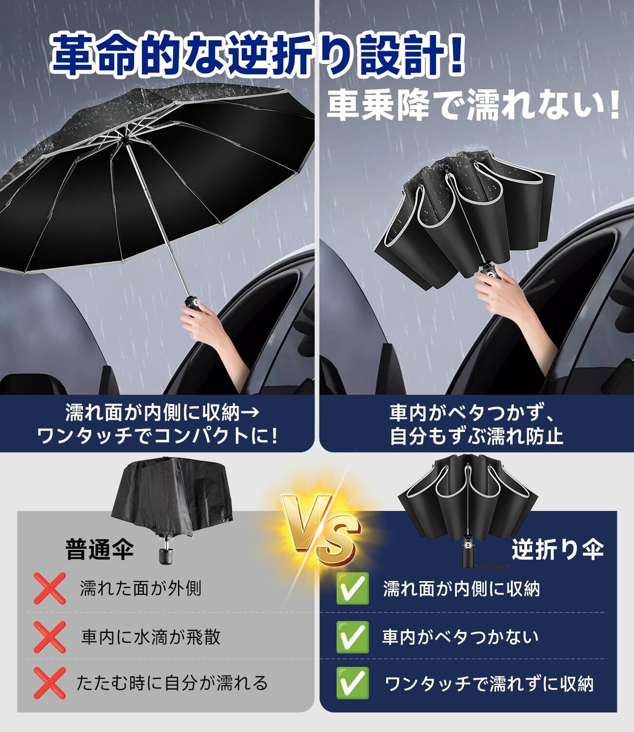 **\新登場!/ 【逆折り式10本骨】折りたたみ傘 ワンタッチ自動開閉|耐風・豪雨でも安心の頼れるバディ!**