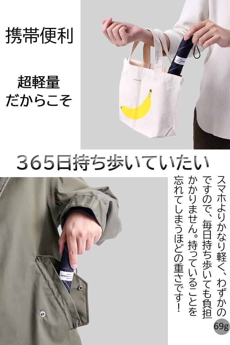 「たったの84gという軽さで、持ち運びが快適!バッグに入れても負担にならず、365日いつでもお出かけ時にスタンバイできる常備傘です。折りたたむと非常にコンパクトに収納でき、諦めていた雨の日のお出かけも楽々です。」