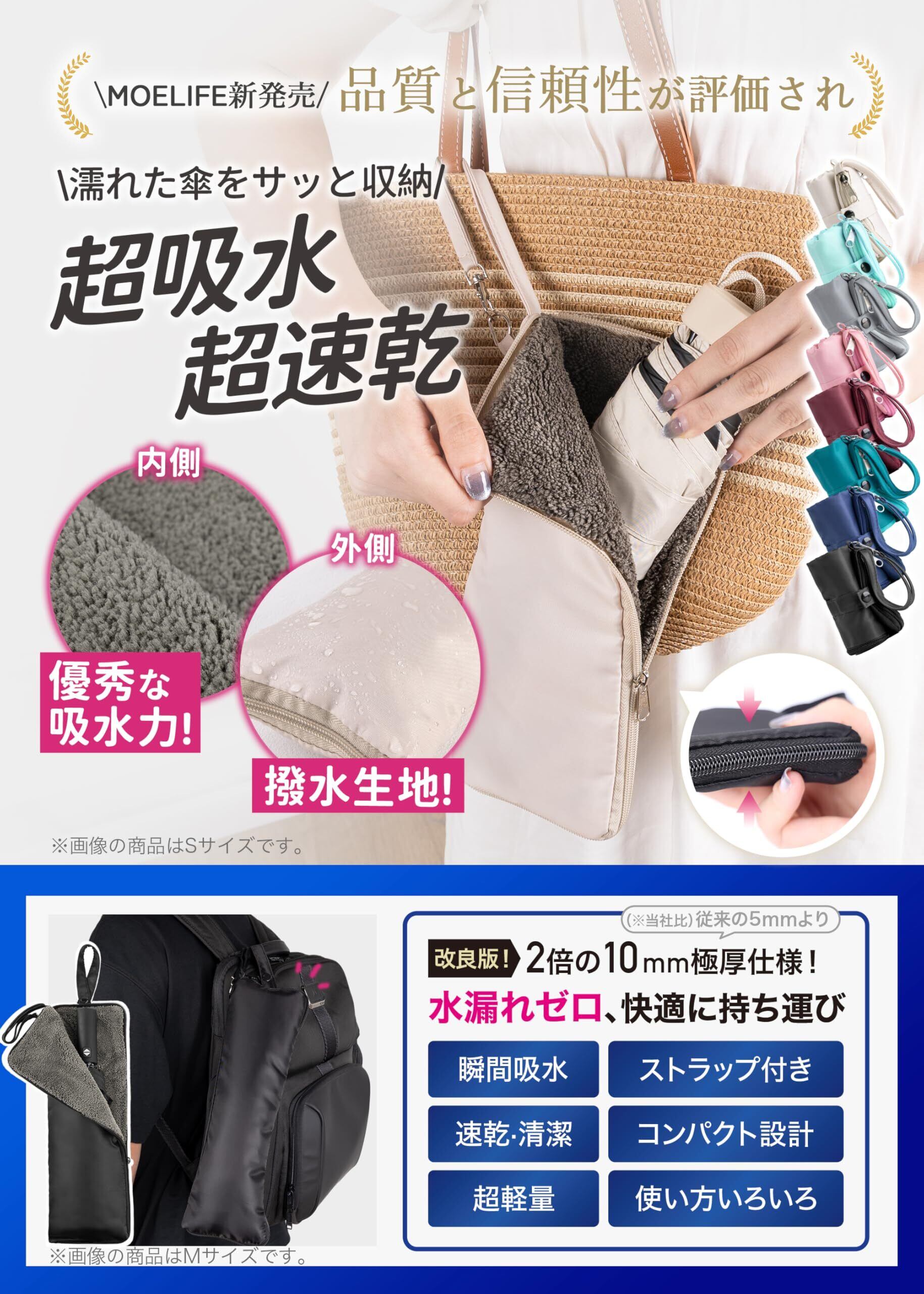 **\新登場!/ 傘カバー 折り畳み傘 ケース【3倍の吸水力・8色展開・3サイズ】|風雨の季節に最適な吸水傘ケース!**