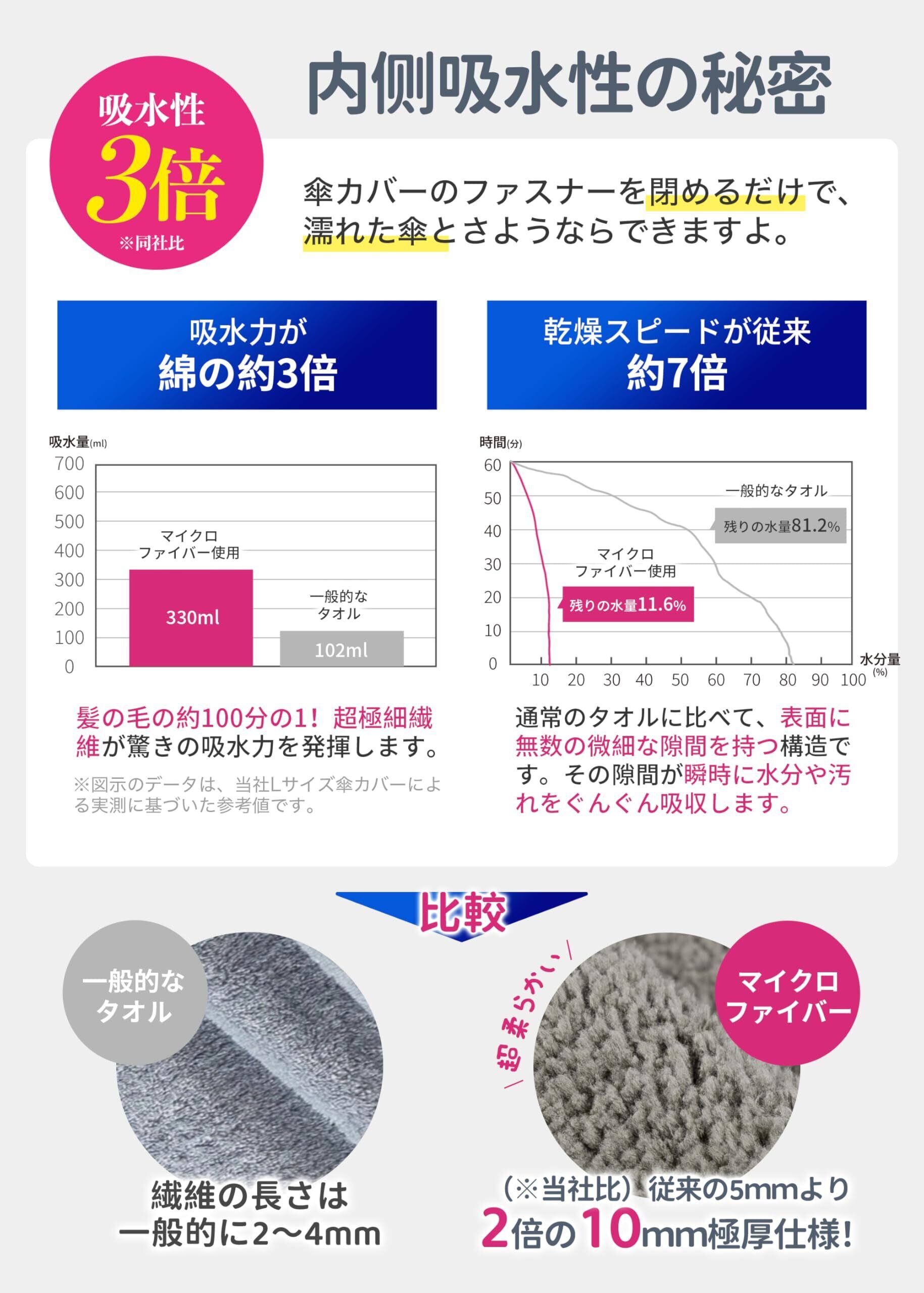 - 驚異の3倍吸水力で濡れた傘をすばやく吸収!