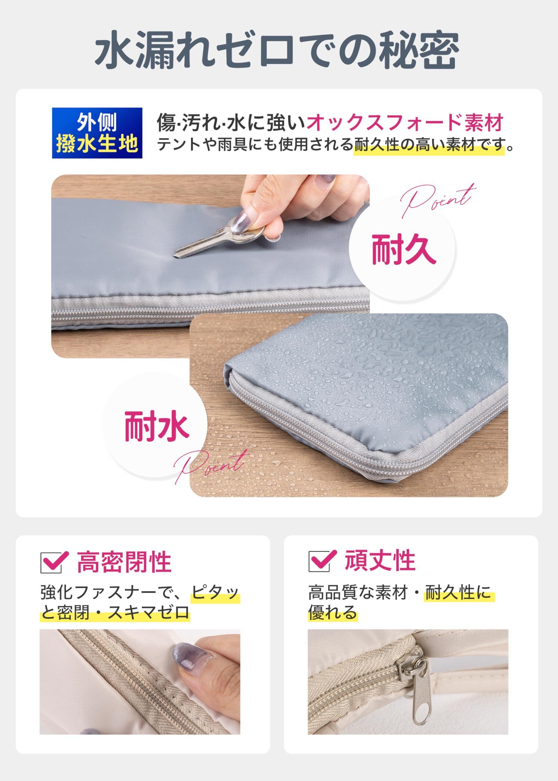 【高品質素材・機能性と耐久性もアップ】内側には吸水性に優れたマイクロファイバー素材を使用しており、傘についた水滴を瞬時に吸収します。水漏れを防ぎ、高い機能性を発揮します。外側には防水コーティングが施されたオックスフォード生地を採用しており、耐久性も抜群です。吸水性と撥水性を兼ね備えた二重構造で、濡れた傘をそのままカバーに収納しても、バッグの中を濡らす心配がありません