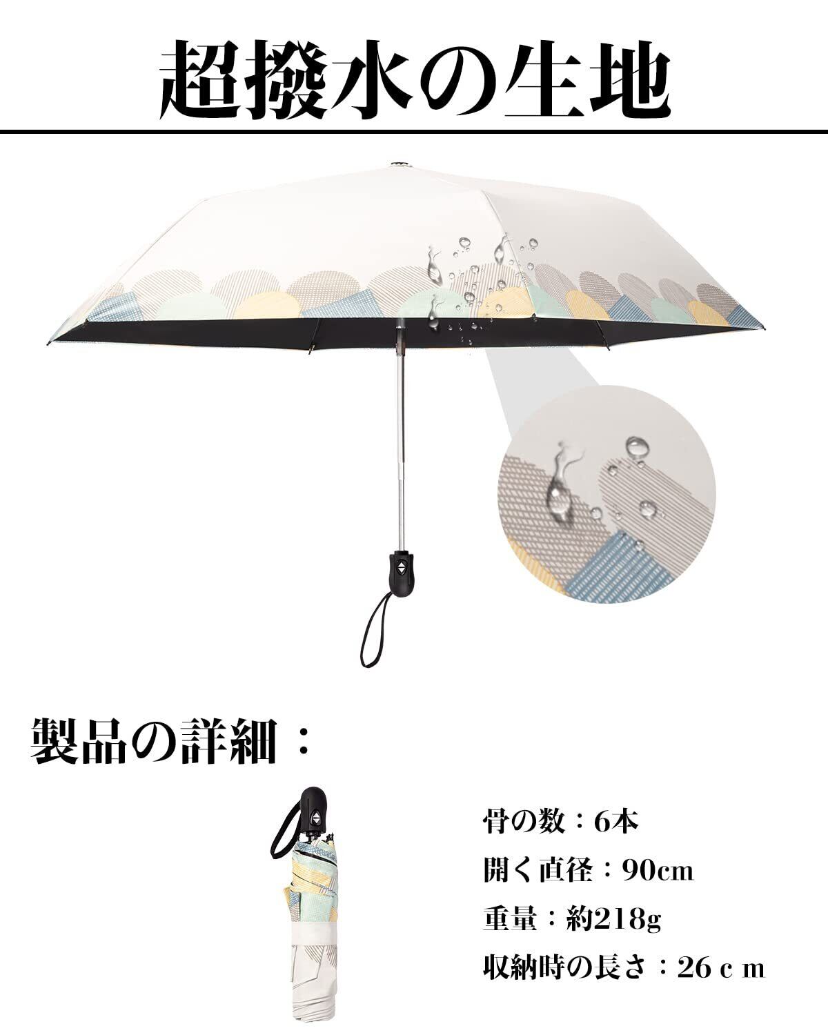「強風や小雨の際でも安心して使える耐風撥水加工が施されています。晴れの日はもちろん、突然の天候の変化にも対応可能な頼もしい一品です。」