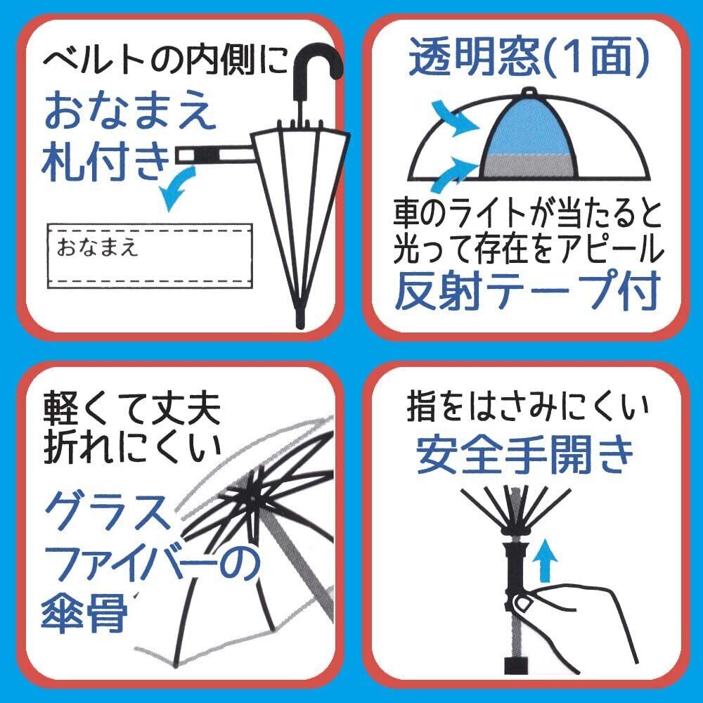 「傘の正面に透明な窓が付いていることで、前方の視界がクリアに確保できます。子供たちが安全に歩行できるように配慮されています。雨の日でも周囲をしっかり確認できるので、安心して使用できます!」