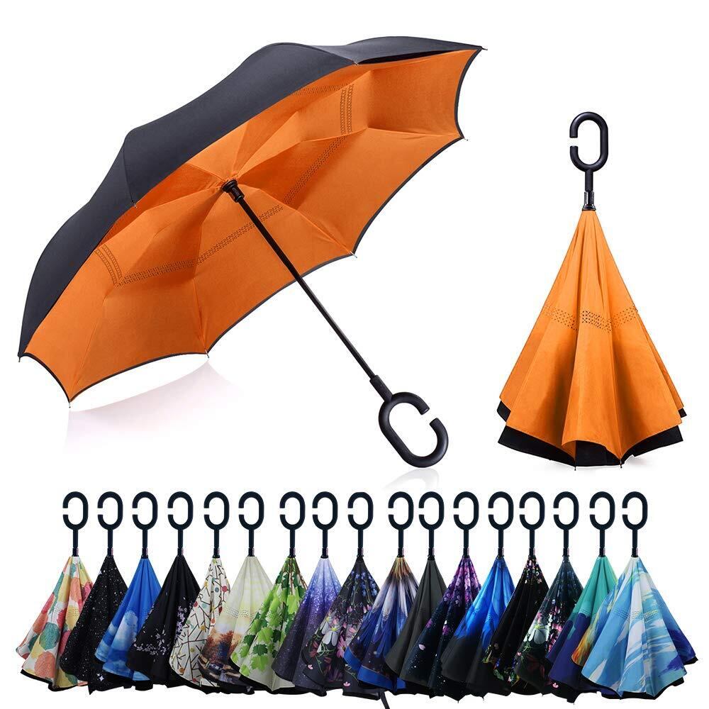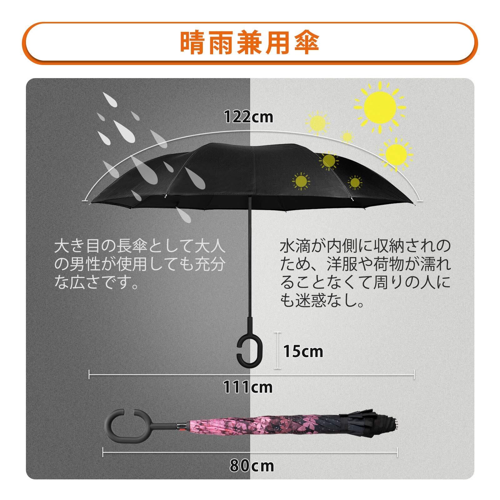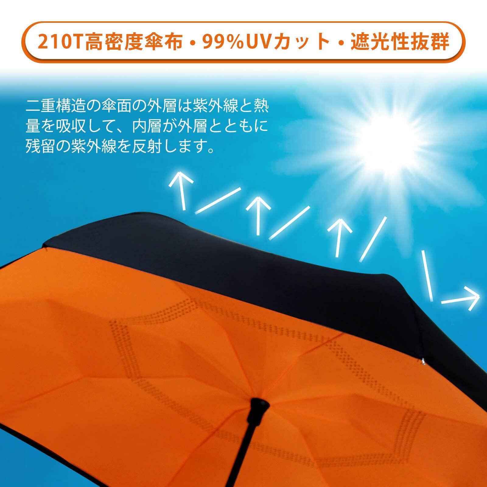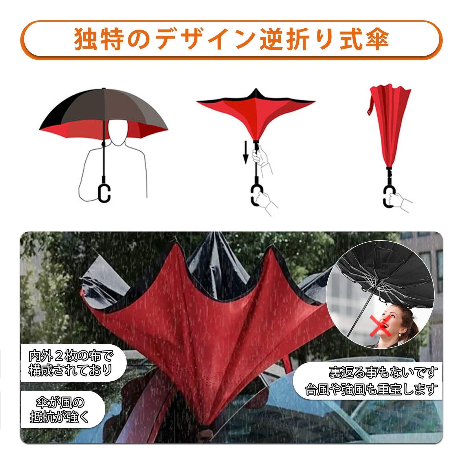 長傘 逆さ傘 逆折り式 耐風 丈夫 撥水 UVカット 晴雨兼用 完全遮光 遮熱 自立可能 車用 男女兼用 熱中症対策 台風対応 梅雨季節に大活躍 収納ポーチ付き