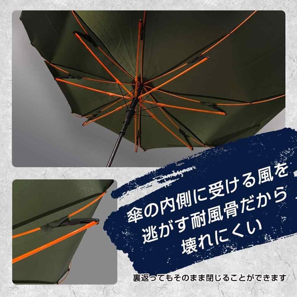 【強風でも折れにくい耐風骨】Z型構造のダボを使用することで、傘が反り返っても折れず、風を受け流します。傘を閉じることで元に戻ります。