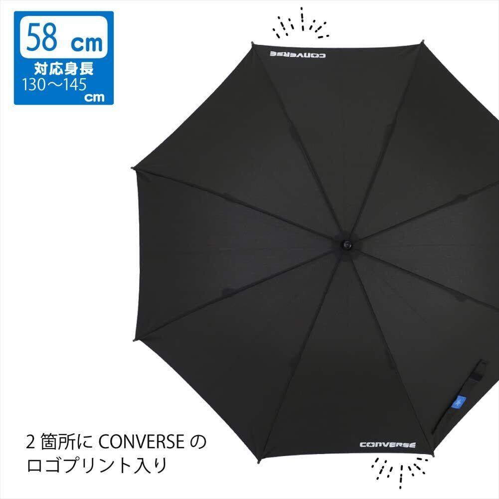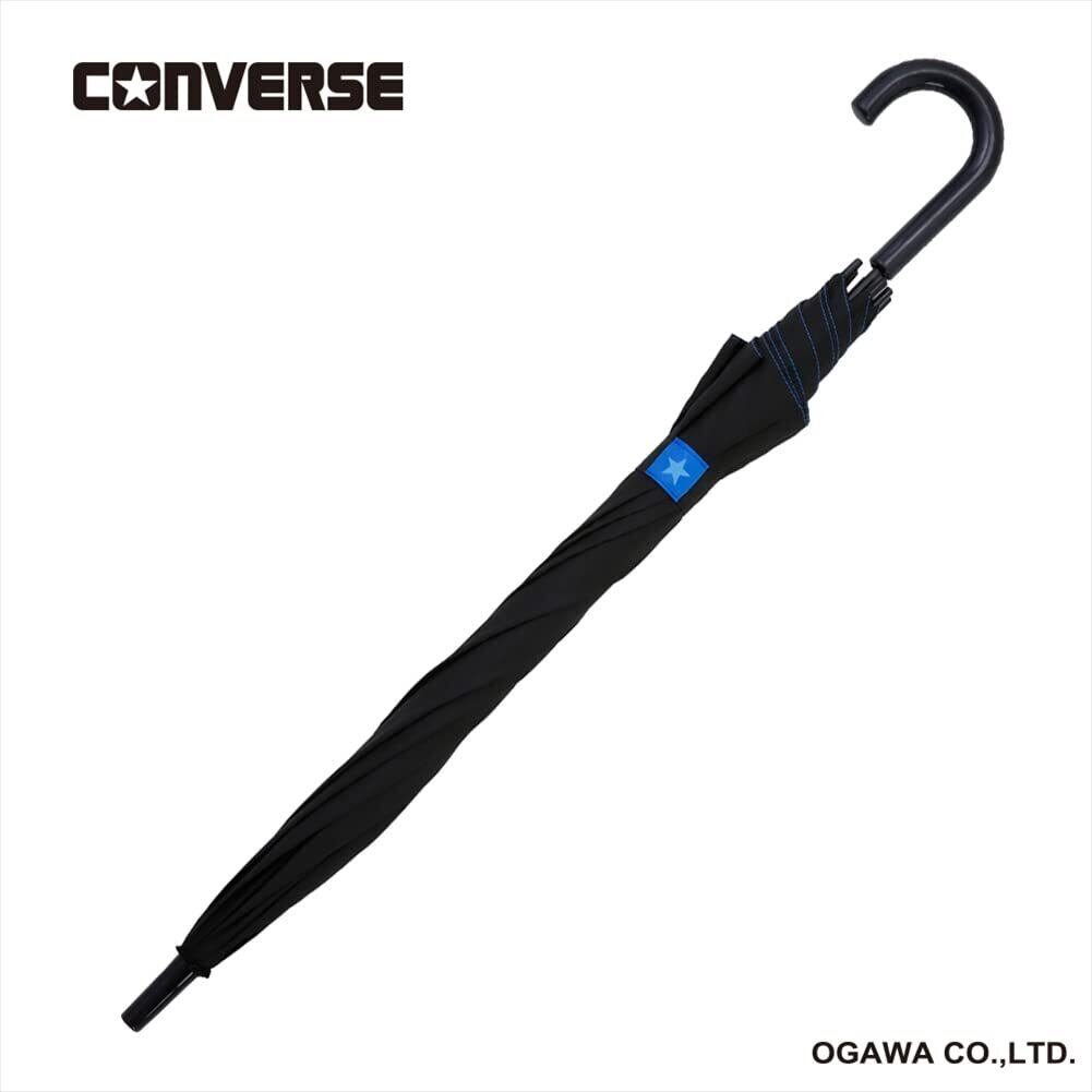 小川(Ogawa) コンバース キッズ長傘 ジャンプ式 58cm 8本骨 CONVERSE ブラック 無地 ワンポイントロゴ 抗菌手元 はっ水 20281