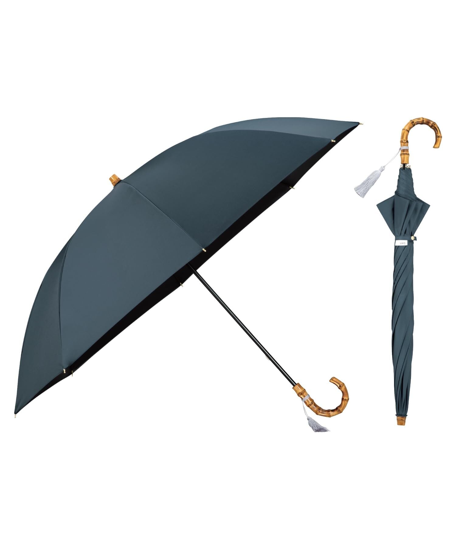 Wpc. 最強の日傘 UVO(ウーボ)長傘/60cm 無地タッセル ブルーグレー《遮光率&UVカット率100%/UPF50+/遮熱/晴雨兼用》親骨60cm 大きい 通勤 通学 レディース 女性 バンブー 持ち手 おしゃれ 可愛い 丈夫 UVO60S-27