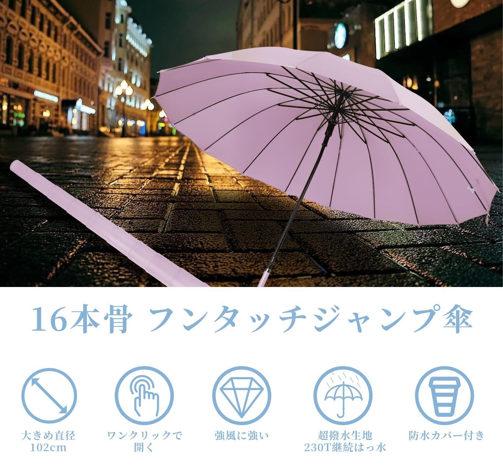 「『長傘 防水カバー付き ケース付き傘』は、雨にも風にも強い、快適な使用感を持つ晴雨兼用の傘です。軽量な16本骨設計により、女性でも扱いやすく、丈夫で耐久性があります。おしゃれなデザインで、通勤やビジネスシーンでも使えるアイテムです!」