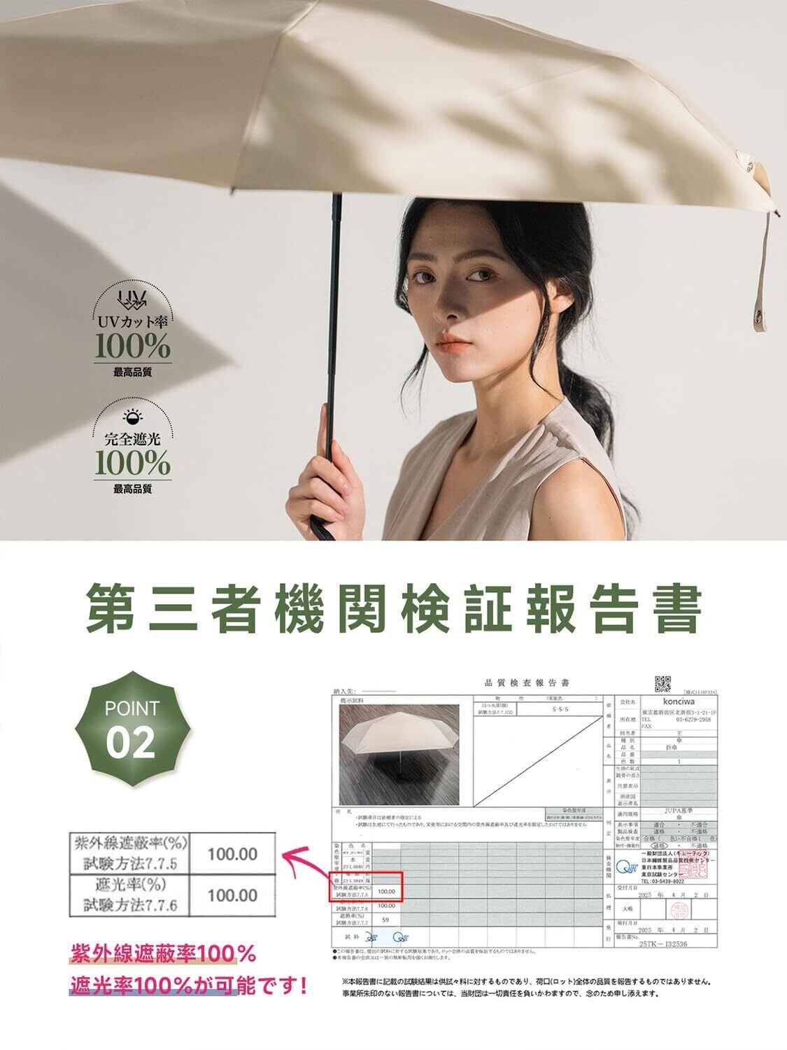 【形状記憶加工】折りたたみ傘の畳みにくい難点を解消するために開発した「MFU」シリーズがついに登場しました!形状安定加工により、5秒でたためる日傘。また、収納時にはかさばらず、綺麗にまとめることができます。一般的な形状安定傘は、傘地にシートを貼り付けて作るため、重さが気になったり、使用している中で剥がれてきたり、骨に負担がかかったりする問題点があります。一方でkonciwaの形状安定傘は特殊な熱加工により「生地そのもの」に折り目をつける加工を施しているため、軽さはそのままで半永久的に効果が持続します。たたむ動作が簡単になるので、これまで苦手意識のあった方も使う煩わしさが軽減されます。