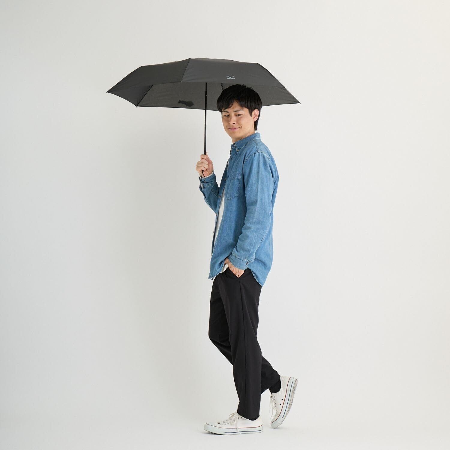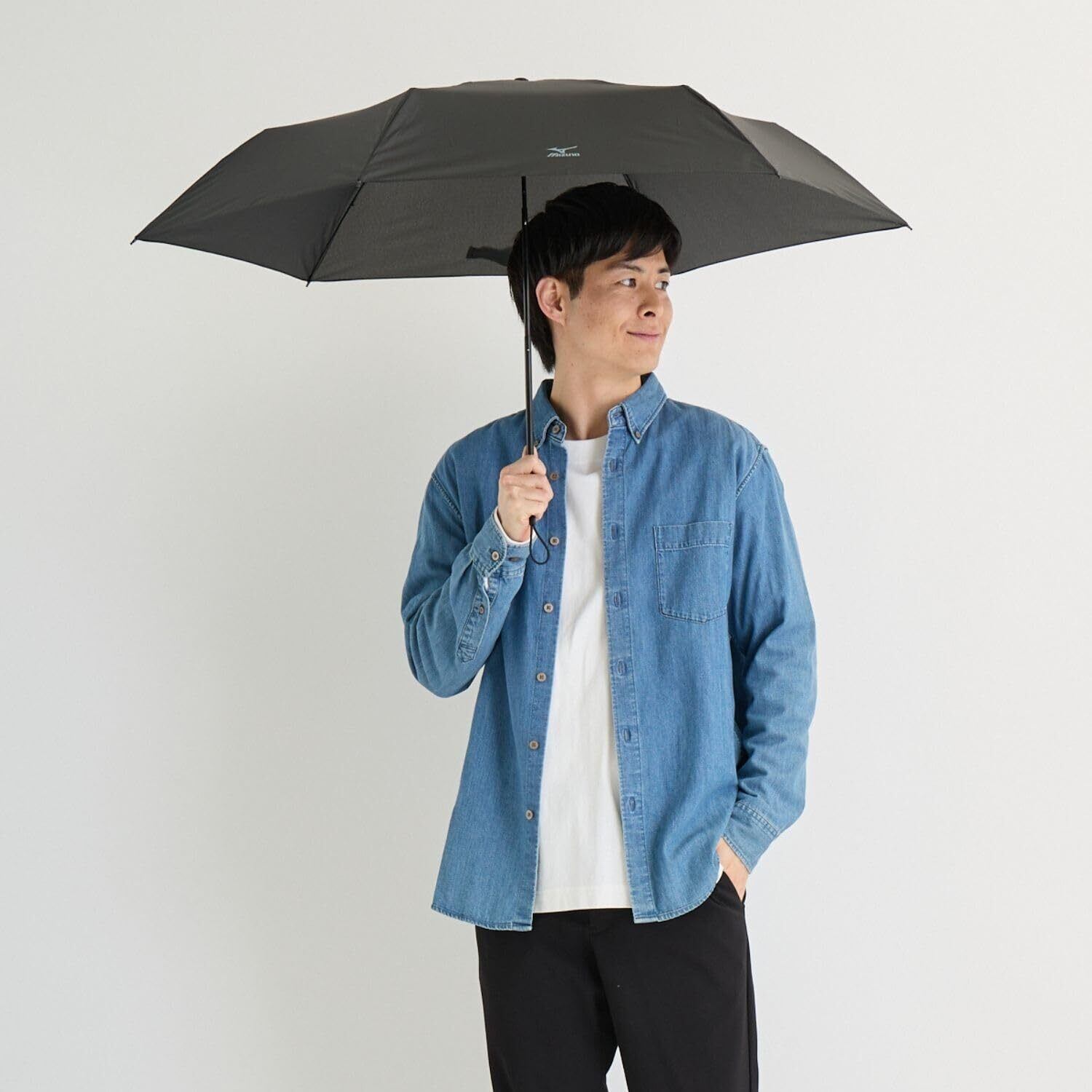 「『MIZUNO 折りたたみ傘』は、軽量設計で使いやすさ抜群!重さわずか129gのこの傘は、男女問わず幅広く使えるスタイリッシュなアイテムです。親骨55cmのサイズで、急な雨にも瞬時に対応できる便利さを誇ります。」