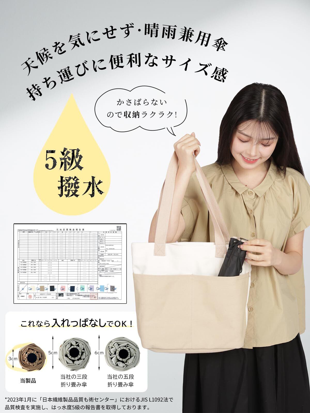 「この日傘は超軽量設計で、わずか110gから140gと驚くべき軽さを実現!収納時はわずか数センチでコンパクトに収まり、小さなカバンにも楽々入れられます。急なお出かけや旅行時にも非常に便利です。」