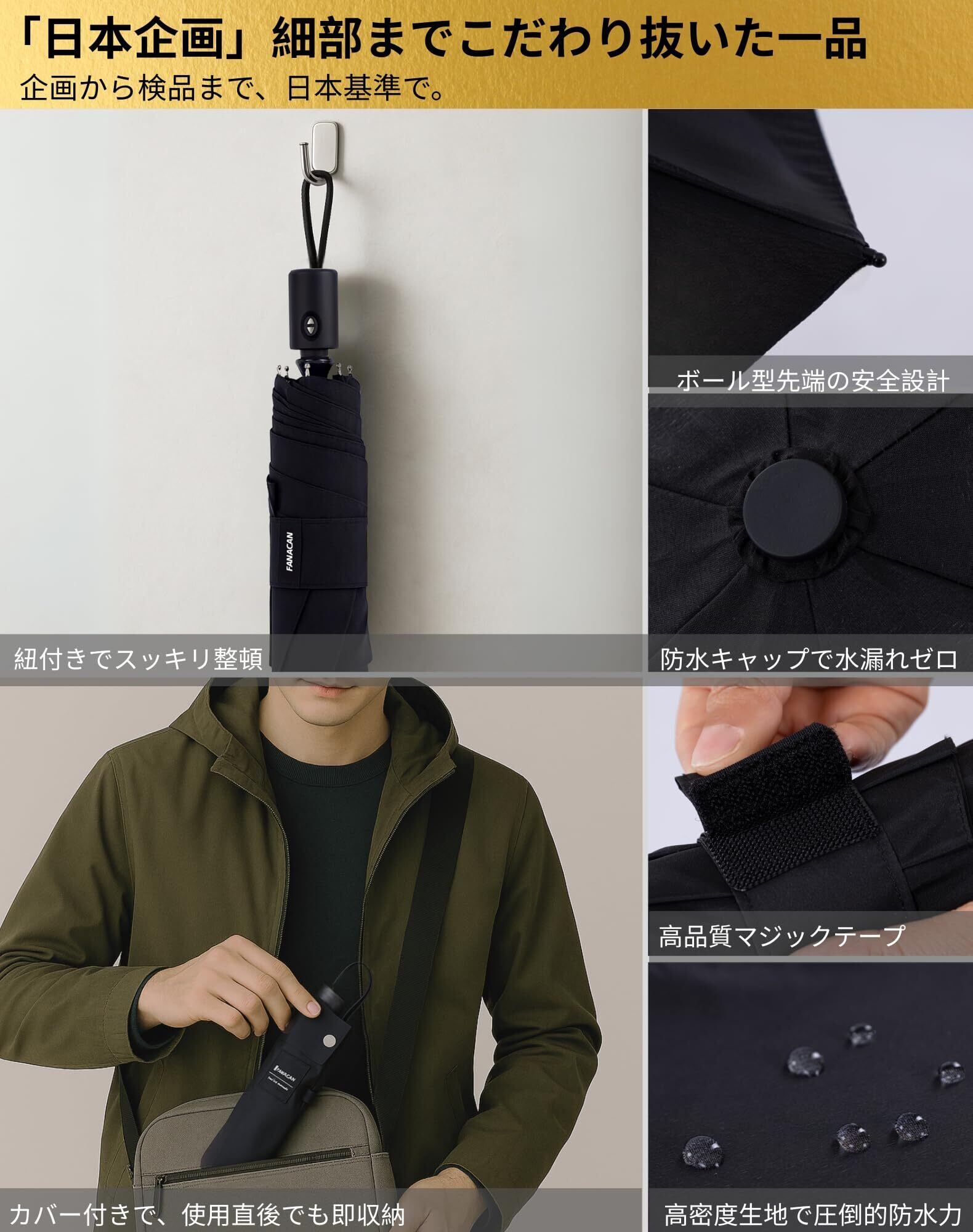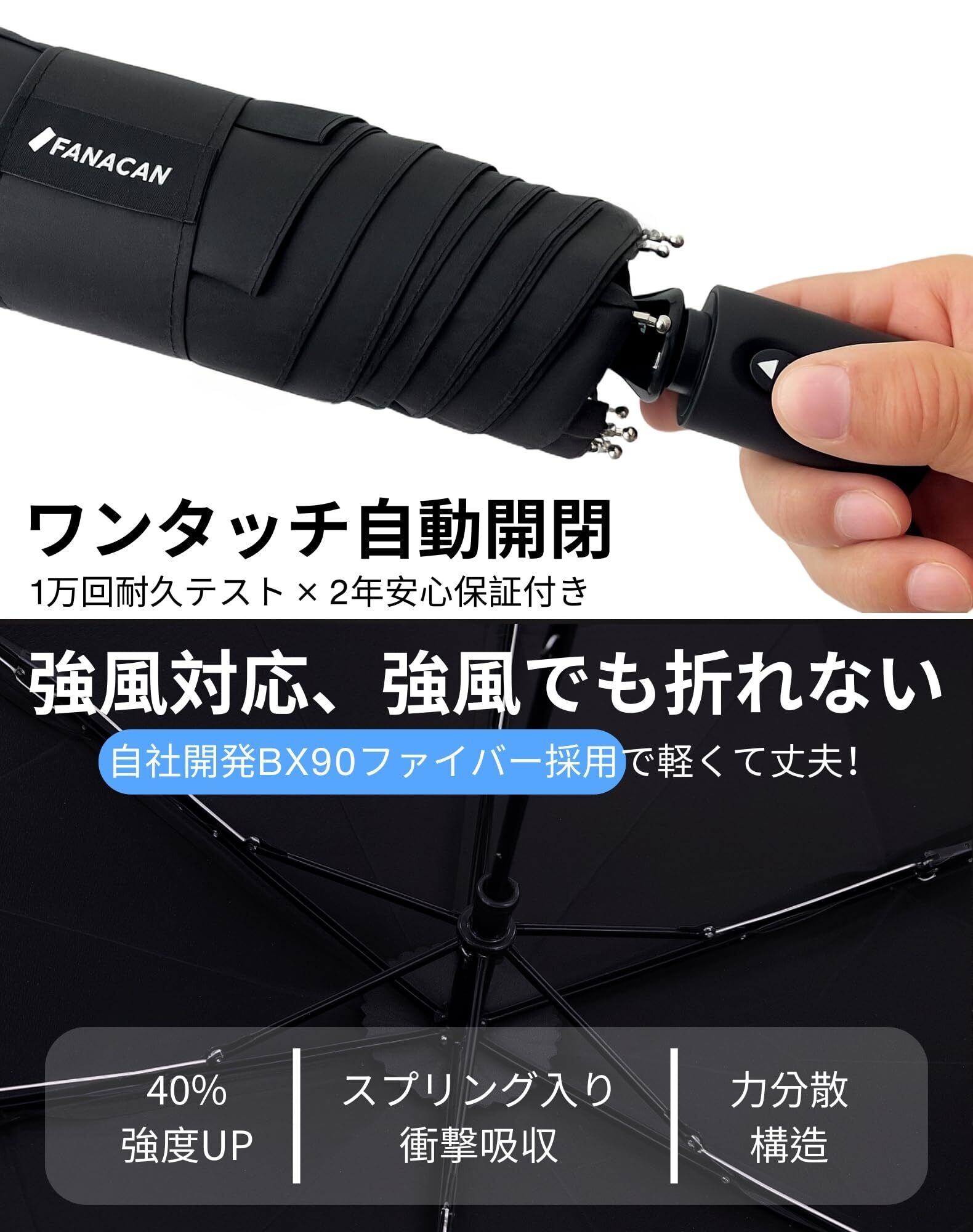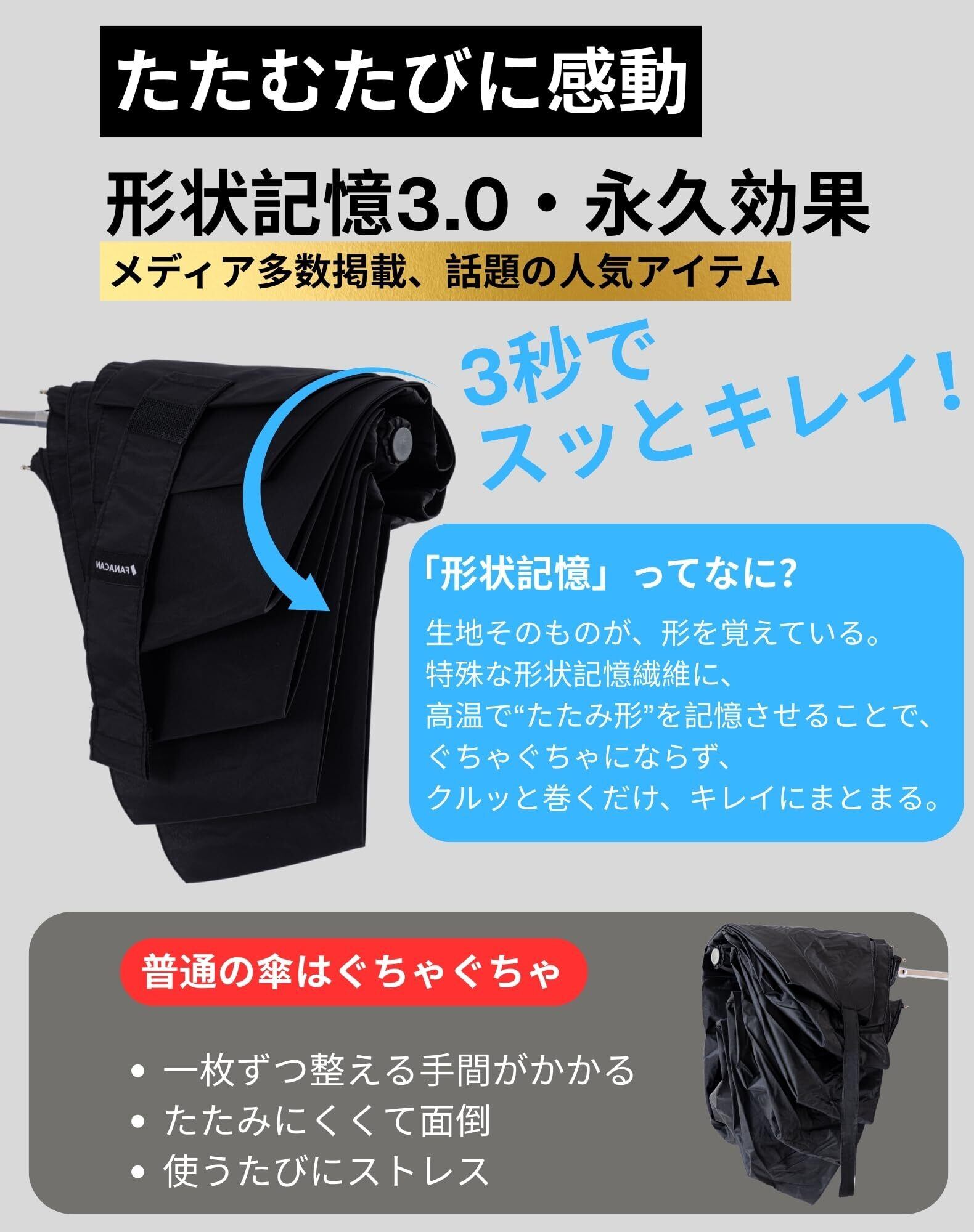 **\新登場!/ FANACAN 3秒でたためる軽量折りたたみ傘|形状記憶のタフなメンズ傘!**