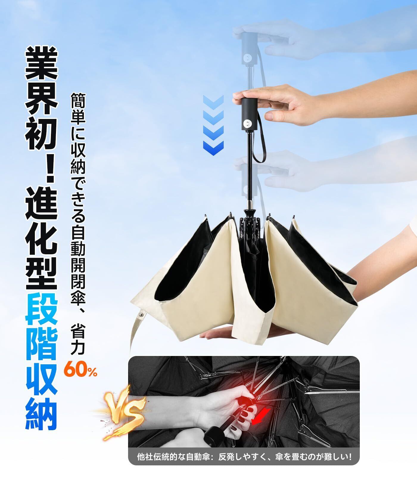 **\新登場!/ 日傘『業界初!段階収納&JIS認証』UVカット100% 自動開閉・耐風撥水折りたたみ傘|晴雨兼用のスタイリッシュなアイテム!**