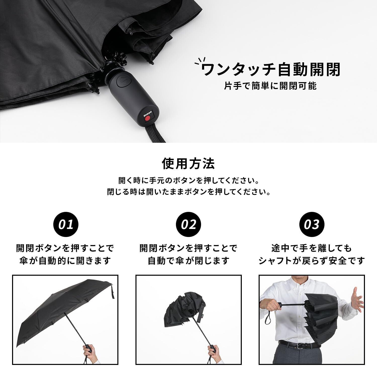 【日本限定 エントリーモデル】お手頃なエントリーモデルで、日本独自のセーフティー・システムを採用した傘。でしか購入できないモデルとなっており、Knirpsを試してみたいあなたに向けた商品です。