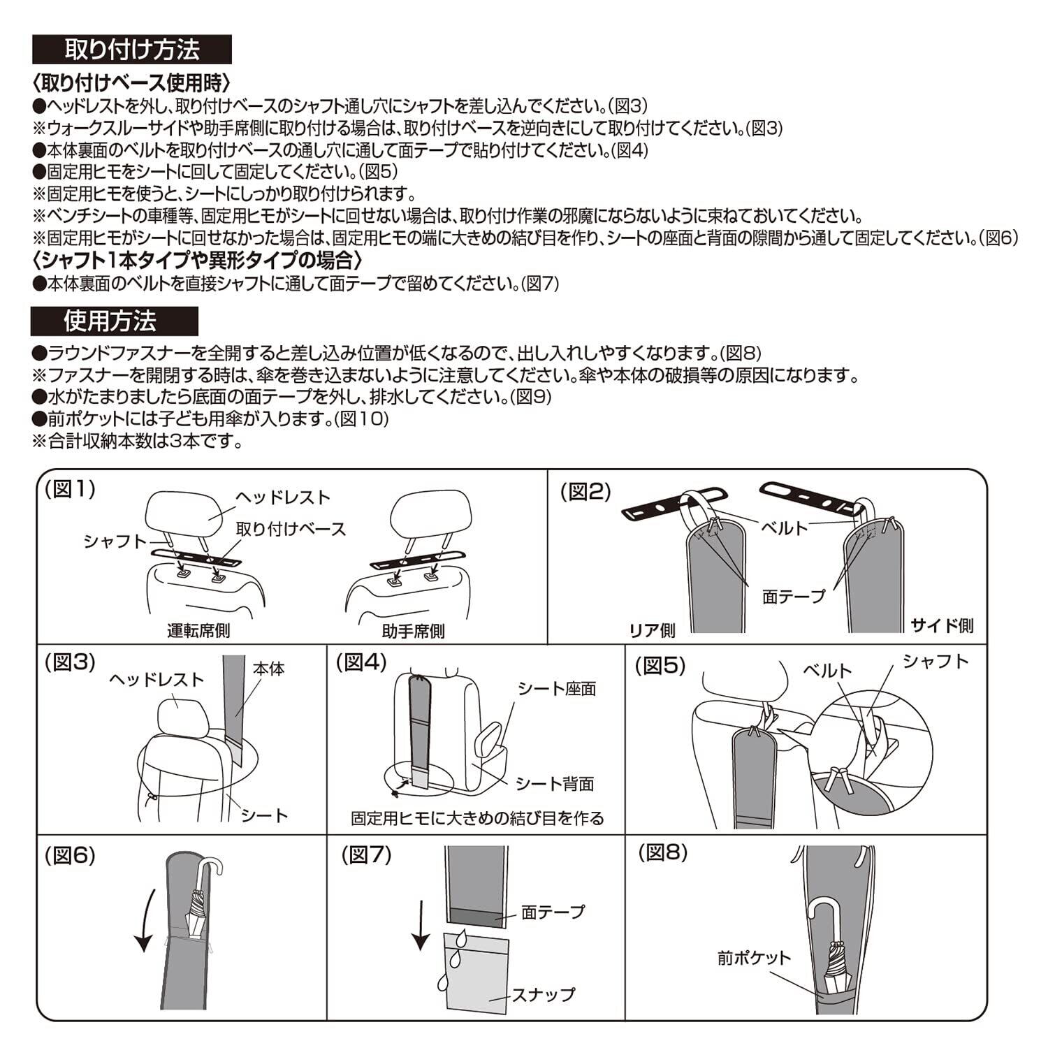 シート背面やシート側面に取り付けられる傘入れです。