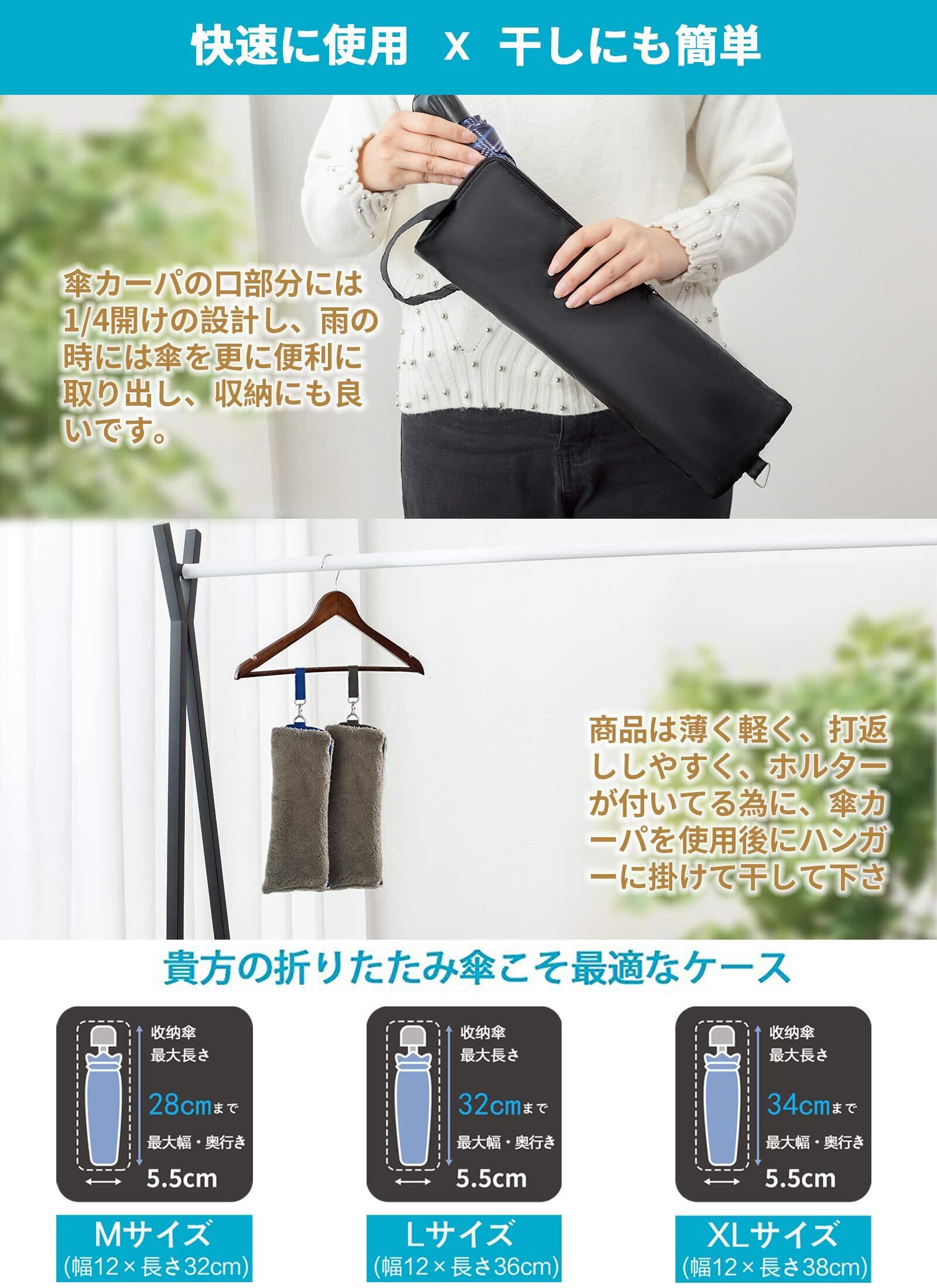 【サイズ、色】商品は3つサイズを用意しています、自分の傘サイズに合わして選択可能です。色も大人っぽく、落ち着く二種色があります。黒とネイビーが有ります。男性にも女性にも合います。