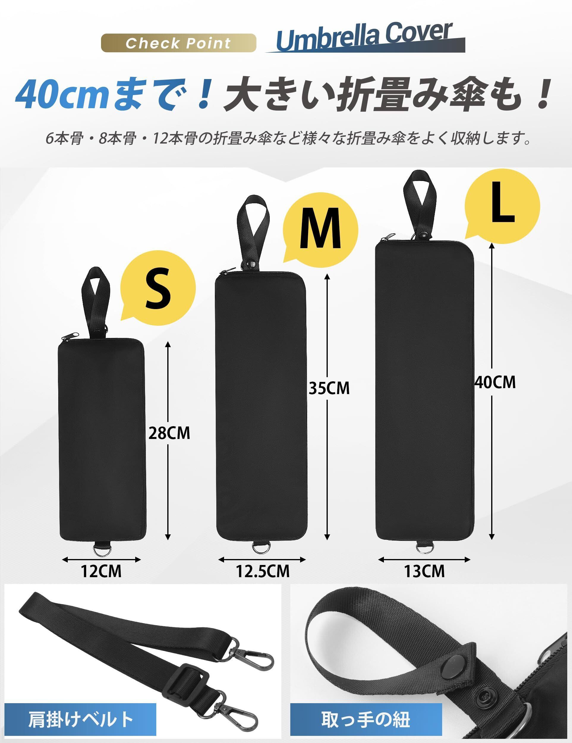 ️【40cm大きいサイズ&3サイズ選べる!!!】 普通の傘カバーは長さは35CMで、大きいサイズの折りたたみ傘に適用しません。しかし、SLEEPSINEROの折畳傘 カバーは3サイズを用意しており、長さ28CMから40CMまでの折りたたみ傘全て利用いただけます。大きいサイズで幅広は13CMに拡大され、6本骨・8本骨・12本骨の折畳み傘、紳士折りたたみ傘、レディース折りたたみ傘など様々な折畳み傘をよく収納します。