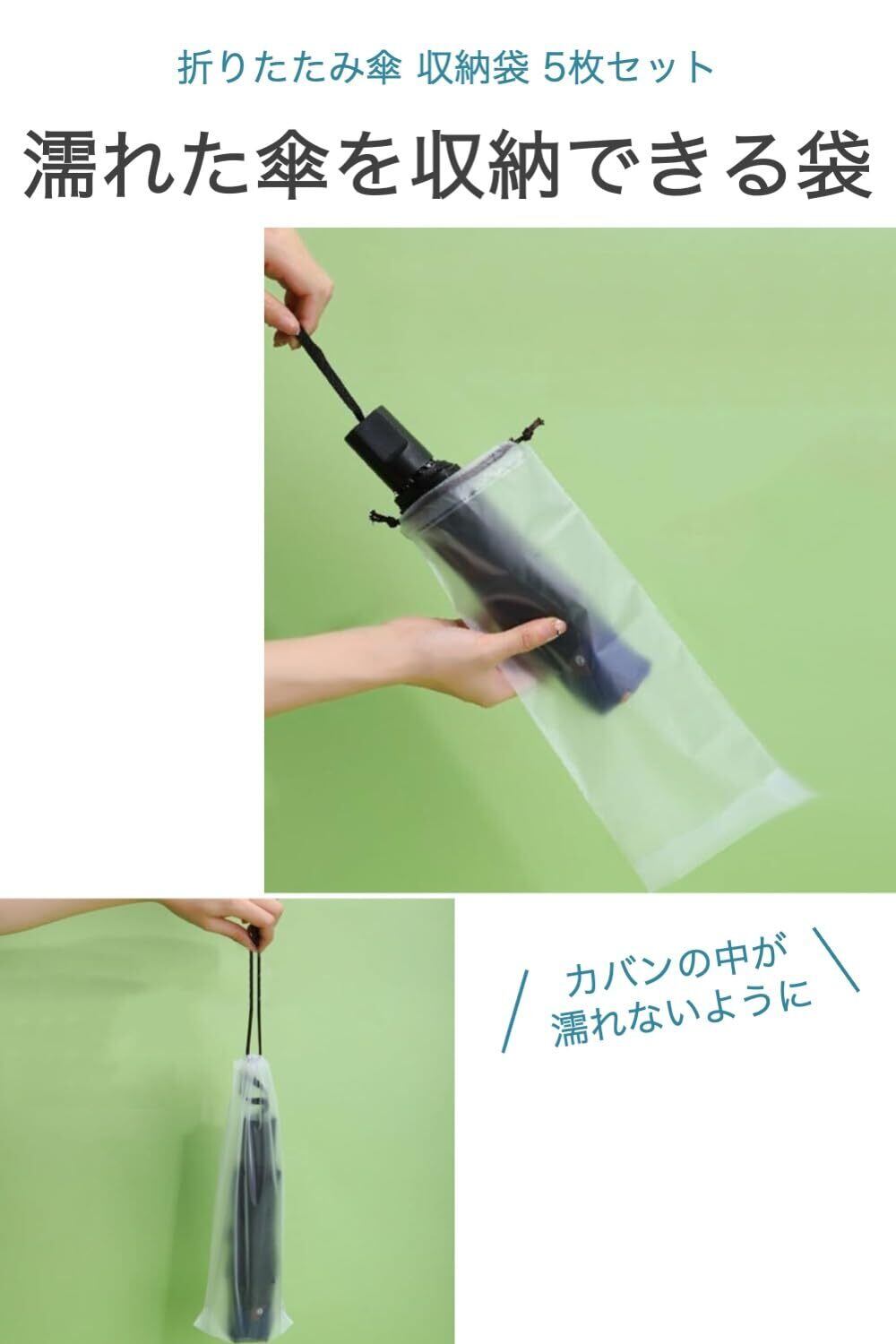 折り畳み傘 収納袋 5枚セット 薄型、半透明のシンプルデザイン カバンやリュックで携帯 電車や車が濡れない
