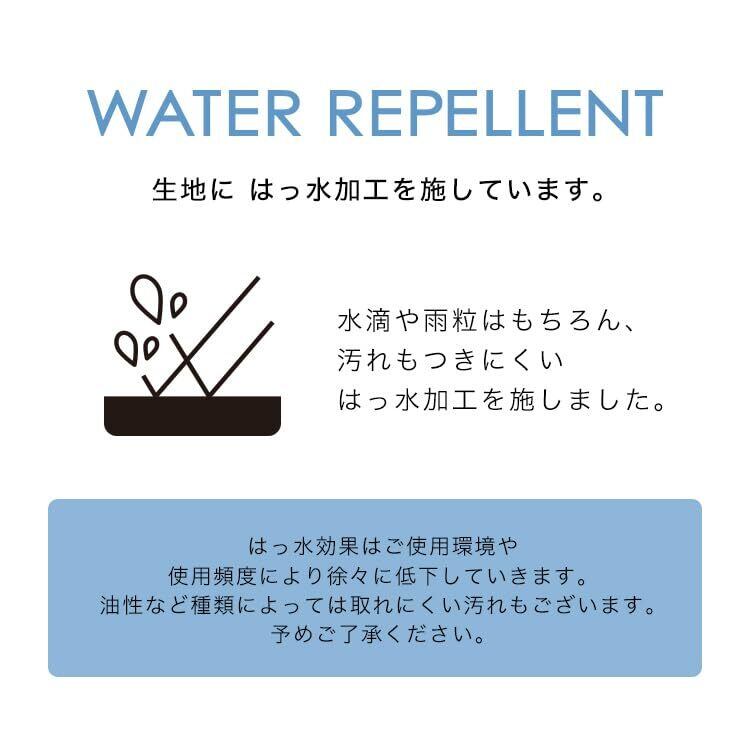 【はっ水加工】こちらの商品は生地にはっ水加工を施している為水をはじきやすく、汚れもつきにくいです。※はっ水効果はご使用環境や使用頻度により徐々に低下していきます。 油性など種類によっては取れにくい汚れもございますので予めご了承ください。