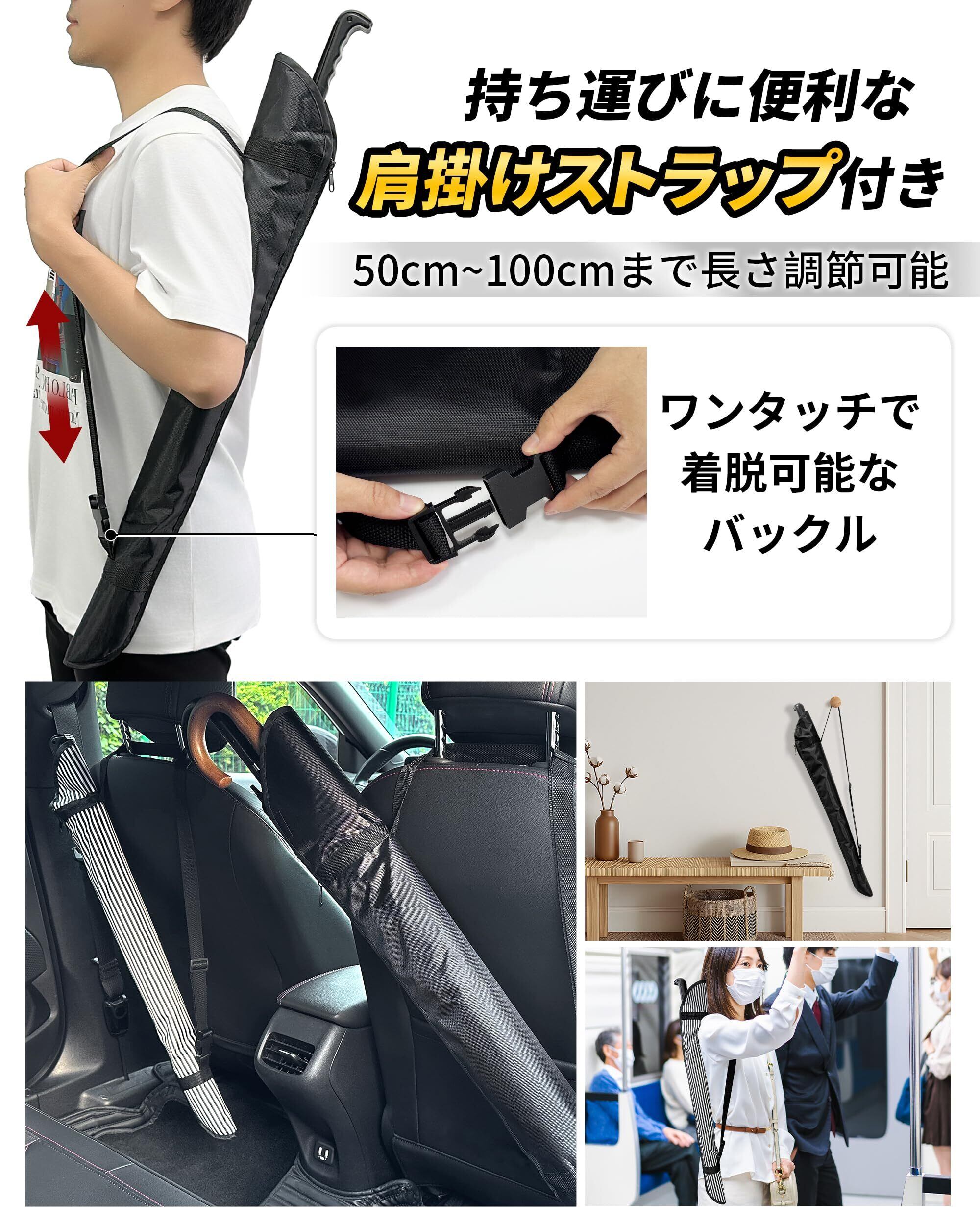 「『傘ケース 長傘 吸水 傘カバー』は、長傘をすっきり収納できる便利なアイテムです。肩掛けデザインで持ち運びもラクラク。雨の日でもスタイリッシュに対応できる、機能性とデザインを兼ね備えた傘ケースです!」