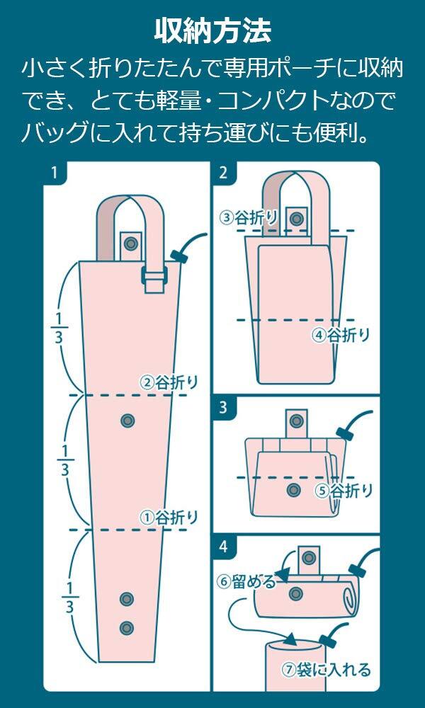 長傘にも折りたたみ傘にも使える。小さく畳んで専用ポーチに入れれば持ち運びにも便利。