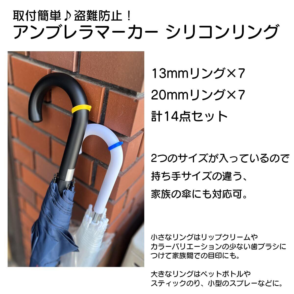 **\新登場!/ [KASSAI]アンブレラマーカー シリコンリング 14個(2サイズ×7)セット|あなたの傘をカラフルに彩る!**