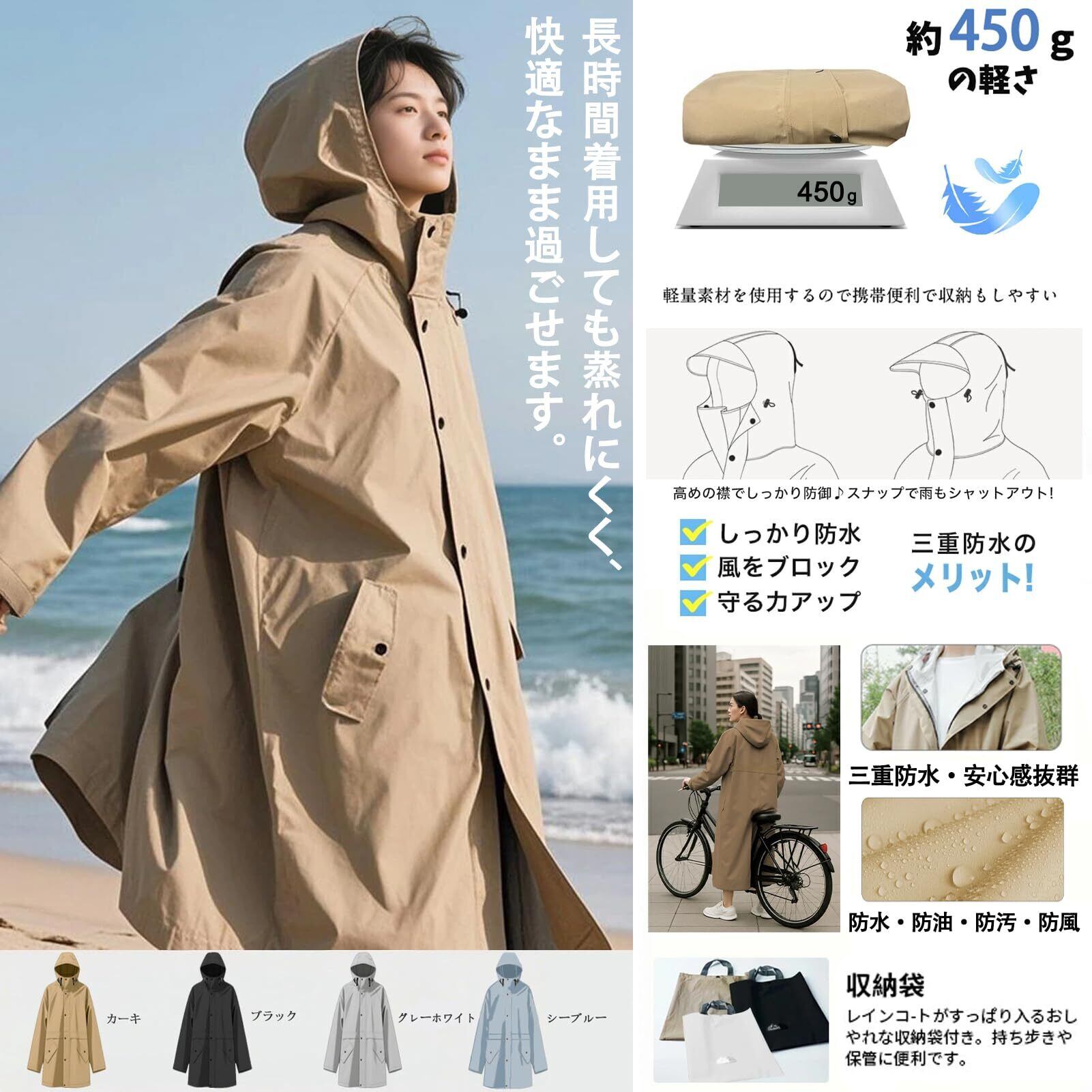 「『[LLWAAV] レインコート 自転車』は、通勤・通学からアウトドア活動まで幅広く対応できるマルチなレインコートです。超軽量設計で、わずか450g!両面からの通気性を考慮し、快適な着心地を提供します。」