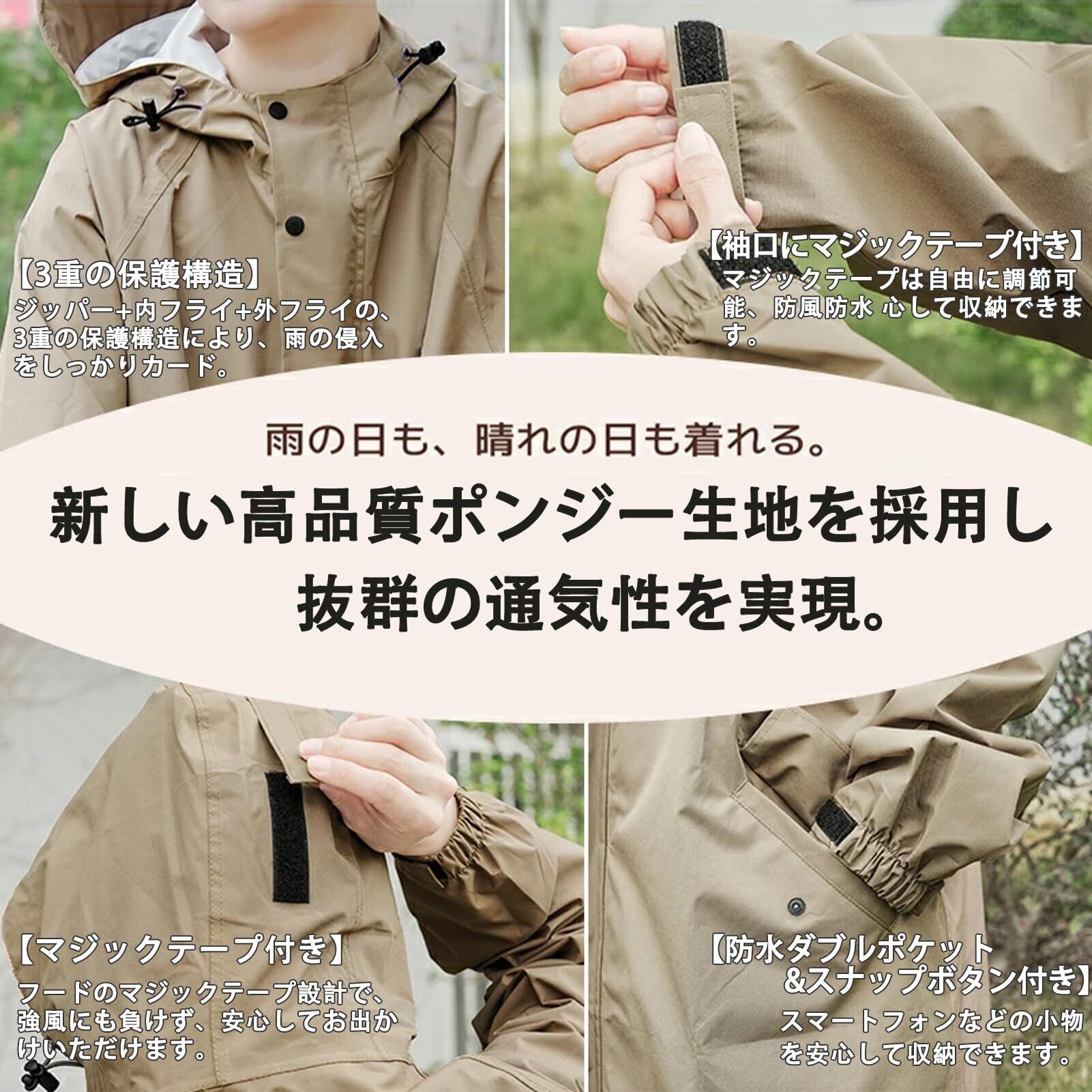 【男女兼用のファッションレインコート&ゆったりサイズ】環境に優しい新型防水素材作られのレインコート、無味無臭で、着心地が良い!通気性が抜群ので、真夏でも安心使用。軽量材質のため、リュック対応 雨の日の自転車で、機能もおしゃれも妥協したくない人のための、高い機能性とデザイン性を両立させたレインコートです。厚手ながら丈夫で、柔らかくて破れにい、防水性もバッチリ。それに高抗汚れなので、大雨でも心配もいらない。