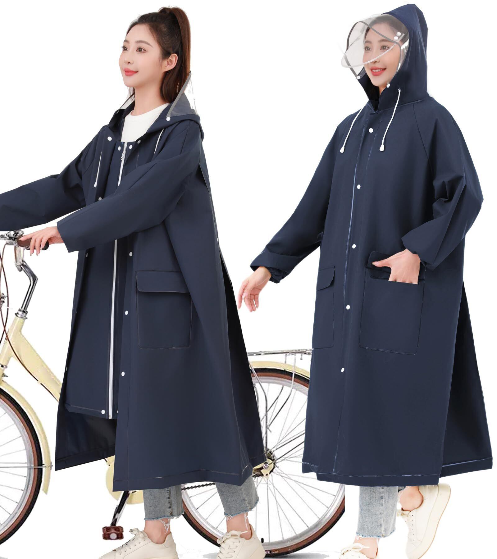[KASIMOY] レインコート レディース メンズ 用 【二重透明レインバイザー付き】 レインウェア 自転車 リュック対応 ロング丈 レインコート ポンチョ かっぱ 自転車 防風防水 雨具 超軽量 豪雨 台風 梅雨対策 レインポンチョ 男女兼用 通勤