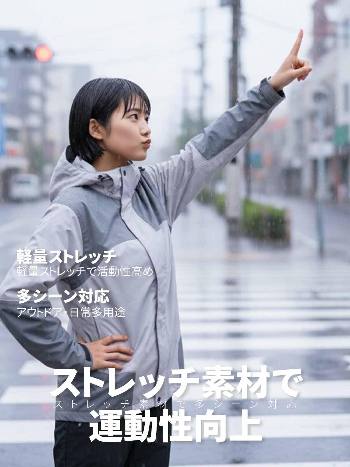 「リュックを背負っている時でも、動きを妨げないデザインが魅力。上下セットで全身をしっかりカバーし、雨からしっかりと保護します。また、ストレッチ性のある素材が使用されているため、動きやすさにも配慮されています。」