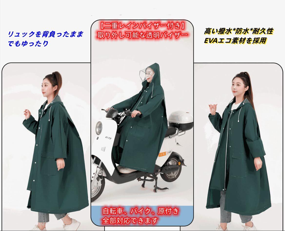 [CITER] レインコート メンズ レディース 2026新型 二重透明レインバイザー 自転車 リュック対応 レインウェア レインポンチョ カッパ ロング丈 大きいサイズ 雨合羽 通学 防水 防風 超撥水 雨具 雨衣 梅雨対策 男女兼用 通勤 収納袋付 1