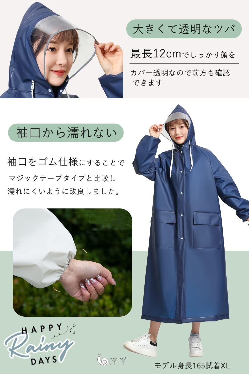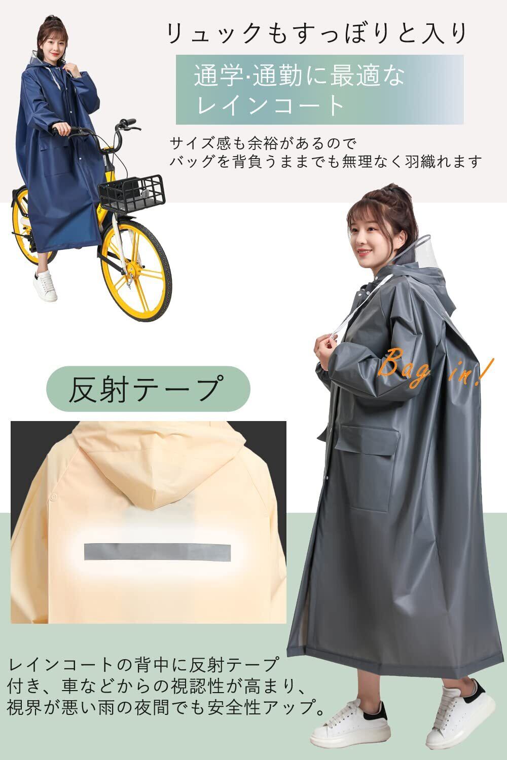 [TONGMO] レインコート レディース メンズ 自転車 大きいつばレインポンチョ リュック対応 ロング丈 バイク 雨具 レインウェア 大きいサイズ 反射テープ 男女兼用 撥水 防水 防風 雨合羽 梅雨対策 耐久 軽量 通勤 通学