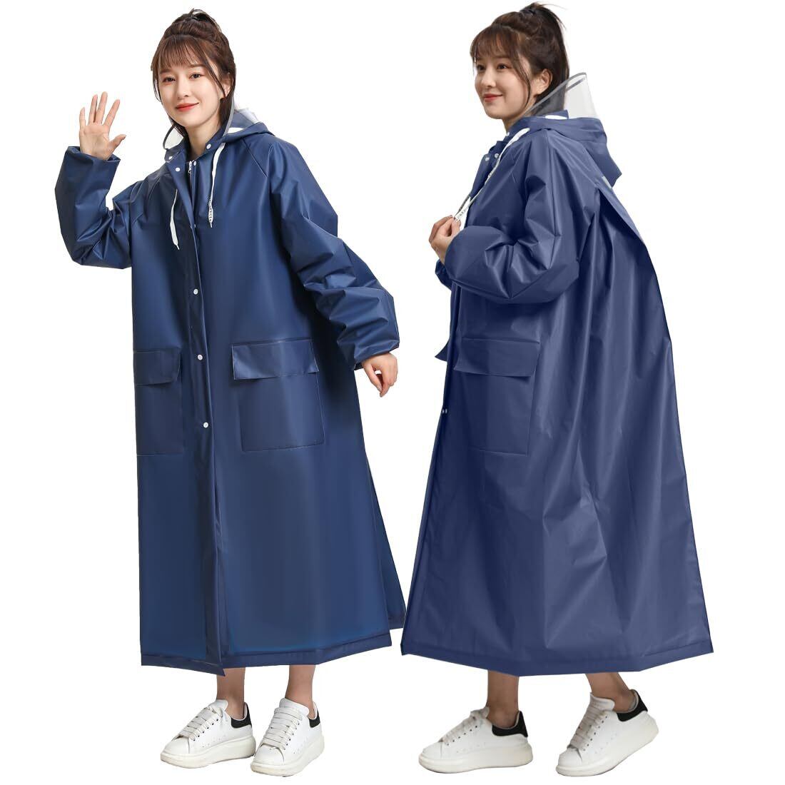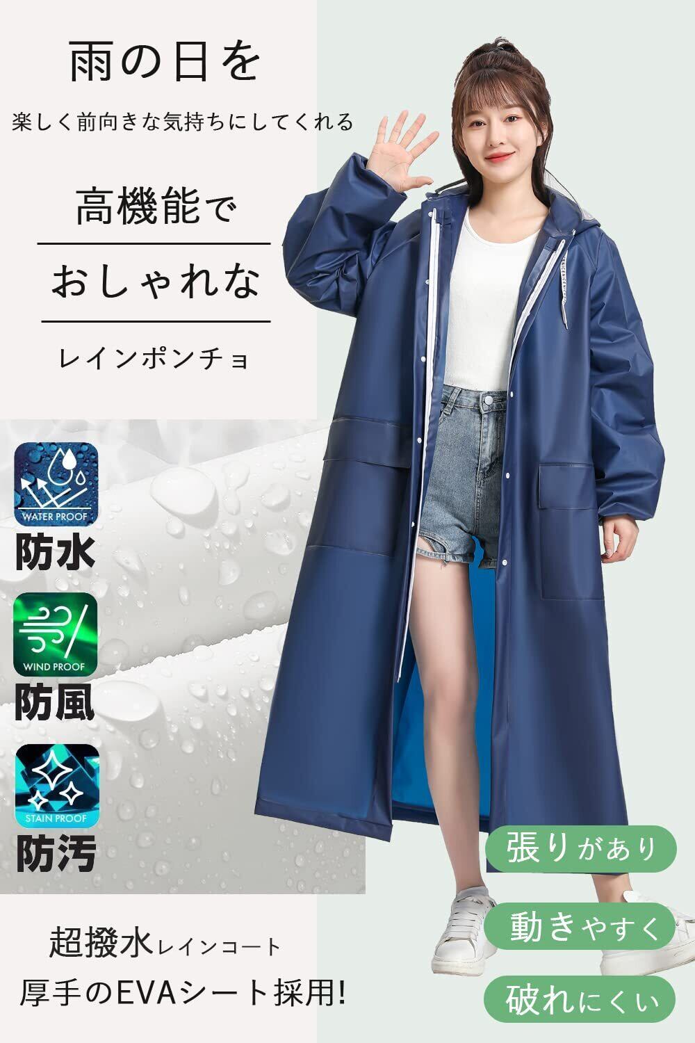【防水なレインポンチョ特別なところ】先端EVA防水素材,無味無臭で、着心地が良いのです、通気性も抜群。張りがあり、動きやすく、破れにくい。厚手のEVAシート採用!ツバ側のひもが付きデザイン、自由調整できるので、大風でも安心!雨の侵入を防ぐため袖口はゴム固定性が高い、風でめぎり上がるが無し!前の部分に大きめのポケツトが2つついているから、ちょっとした小物など入れておくのに便利です。収納袋を付いており、携帯しやすい!便利!