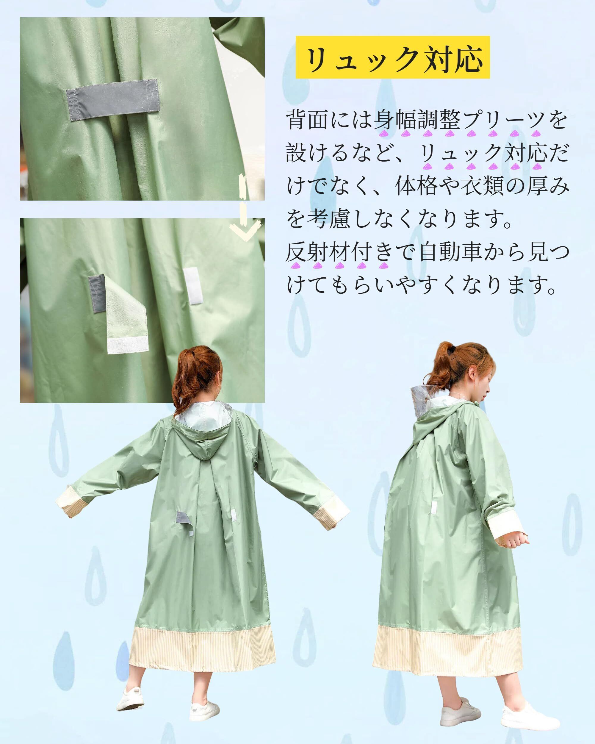 [Aiiro Hatoba] レインコート レディース メンズ 3色展開 通勤 通学 自転車 原付 アウトドア レインウェア リュック対応 専用ポーチ付き