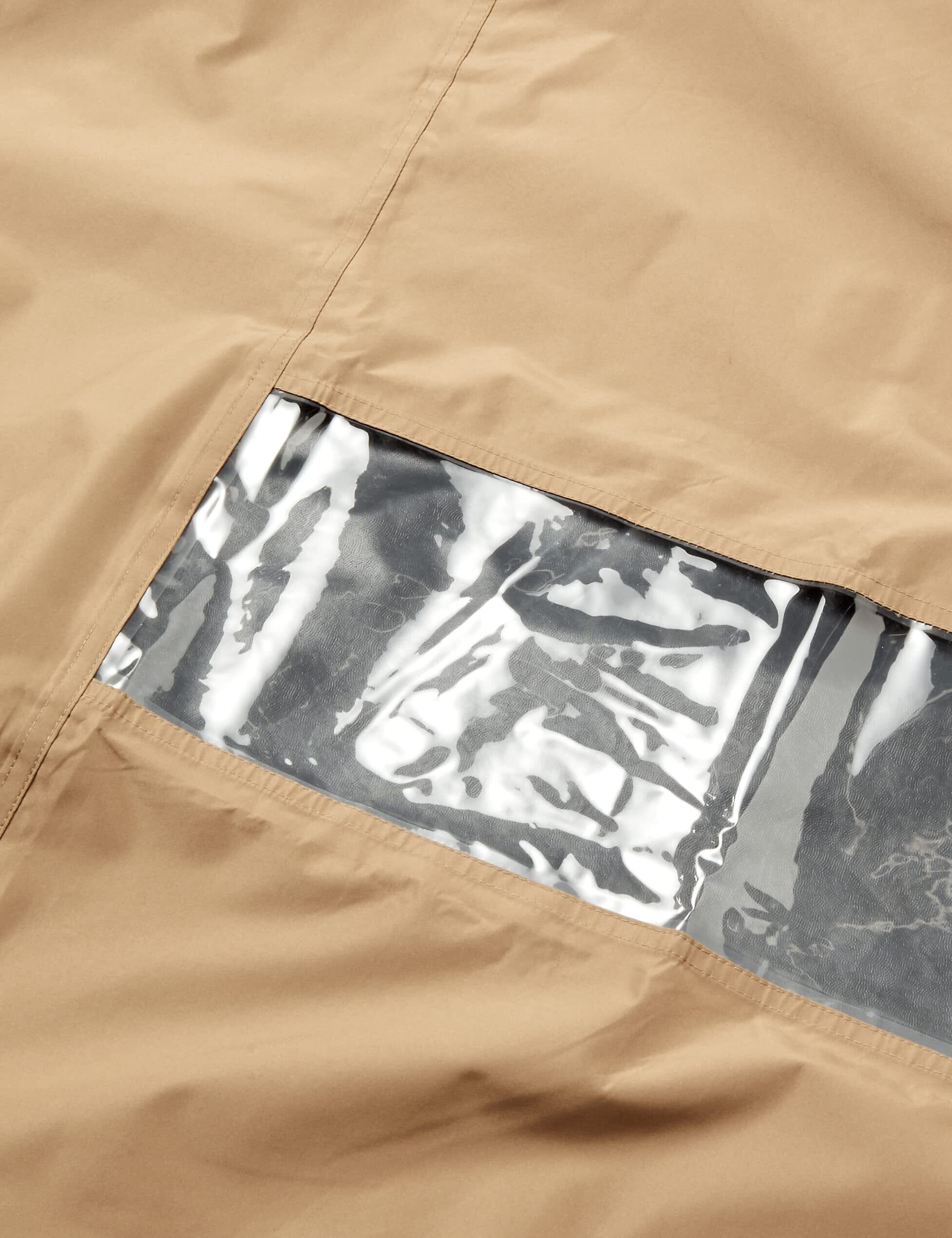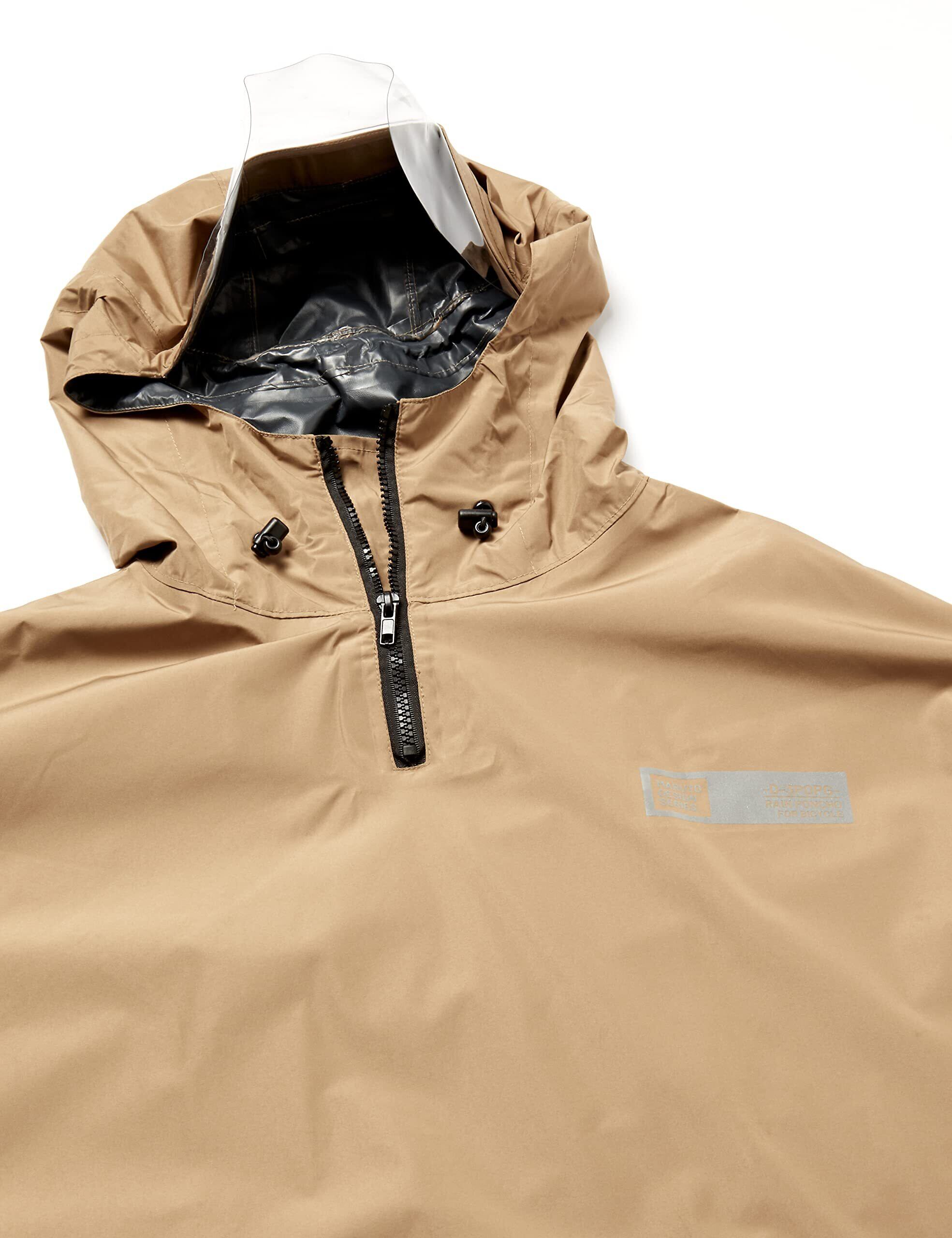 「高品質な防水素材を使用しており、急な雨でもしっかり体を守ります。また、撥水加工により水滴が生地に浸透しにくく、快適な着心地を提供します。」