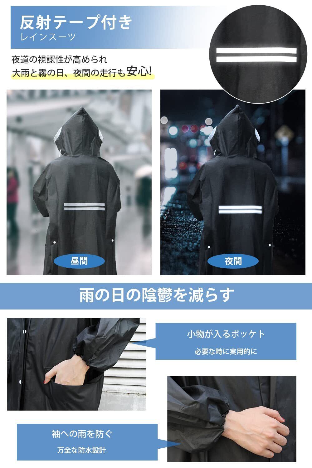 「『[Jerise] レインコート』は、悪天候に負けず快適にお出かけするために設計された高機能レインウェアです。通勤や通学、自転車、バイクの移動時、大きいサイズの男女兼用タイプで、梅雨や豪雨にも安心してご使用いただけます!」