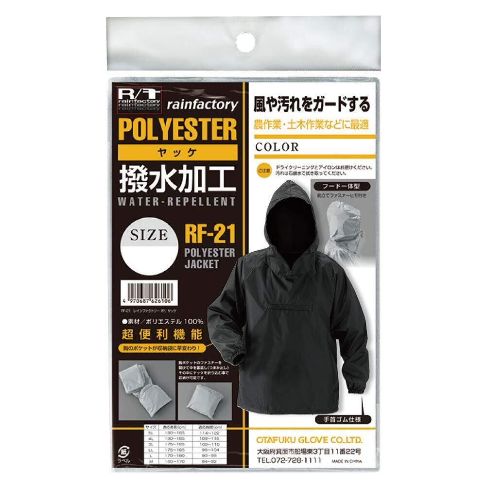 おたふく手袋(Otafuku Glove) ヤッケ レインファクトリー [ポリエステル100% はっ水加工 フード一体型] RF-21 ブラック LL