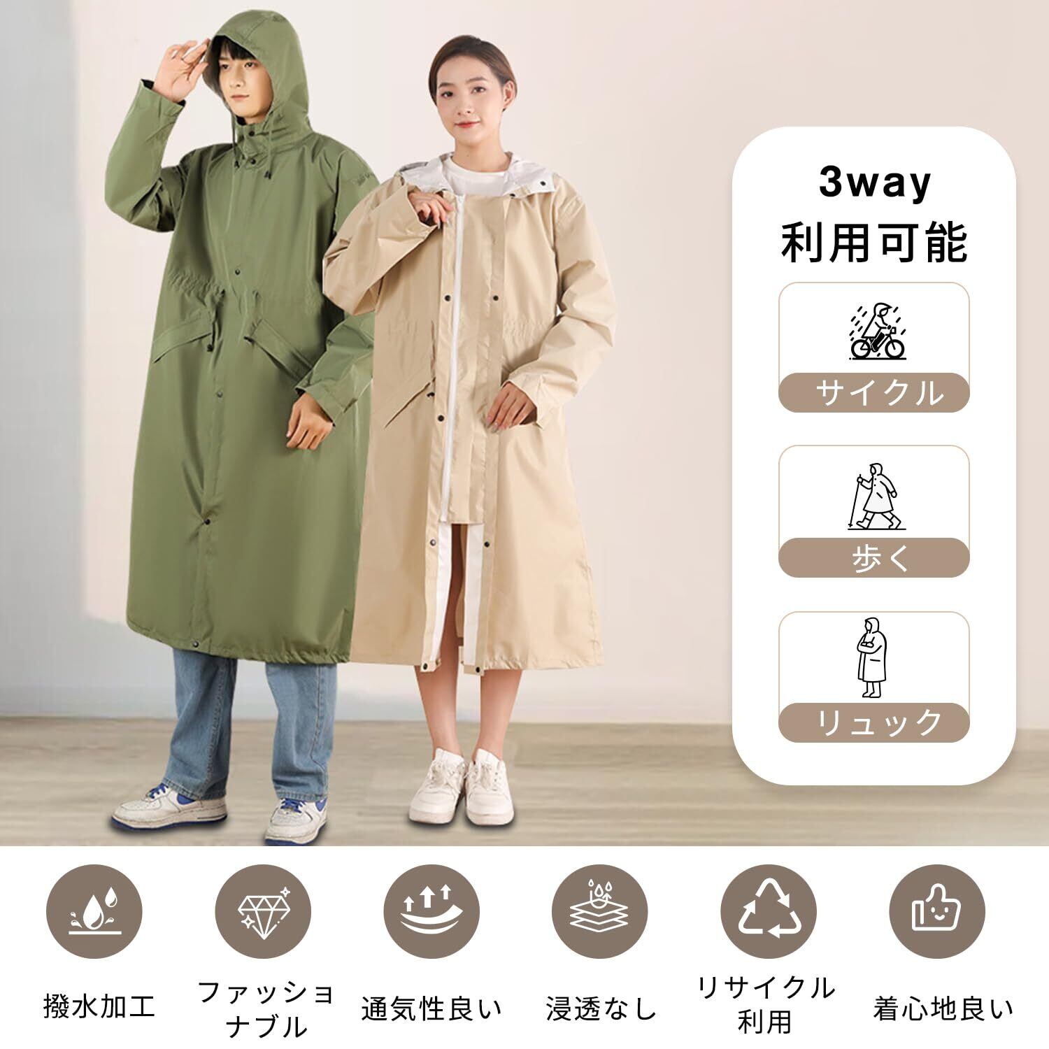 【様々なレインシーンに対応】汚れの付きにくい撥水加工が施されているため、 通勤&通学&自転車&バイクなどの日常使いはもちろん、 キャンプや釣り、ハイキングなどのアウトドアまで幅広くご使用いただけます