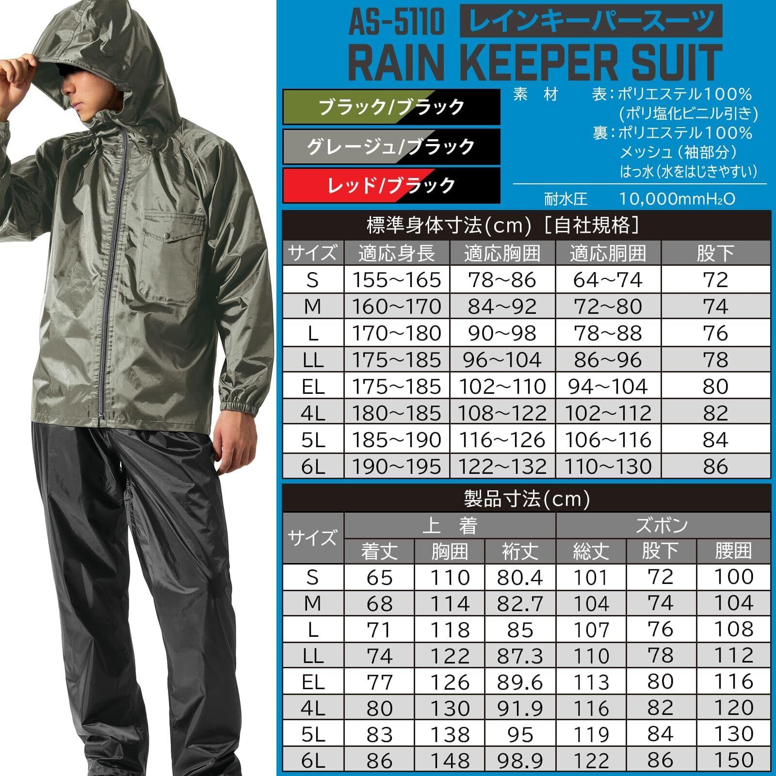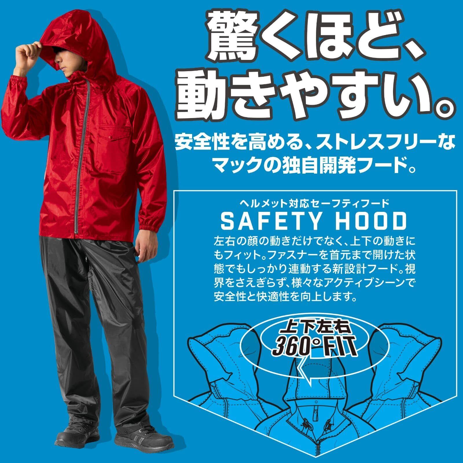 [マック] レインスーツ 耐水圧:10000mmH2O 上下セット ヘルメット対応セーフティフード 上着ポケット付き 裾調整可能 フード調節機能 シームテープ加工 ベンチレーション 裏地メッシュ(袖) 反射材 レインキーパースーツ AS-5110