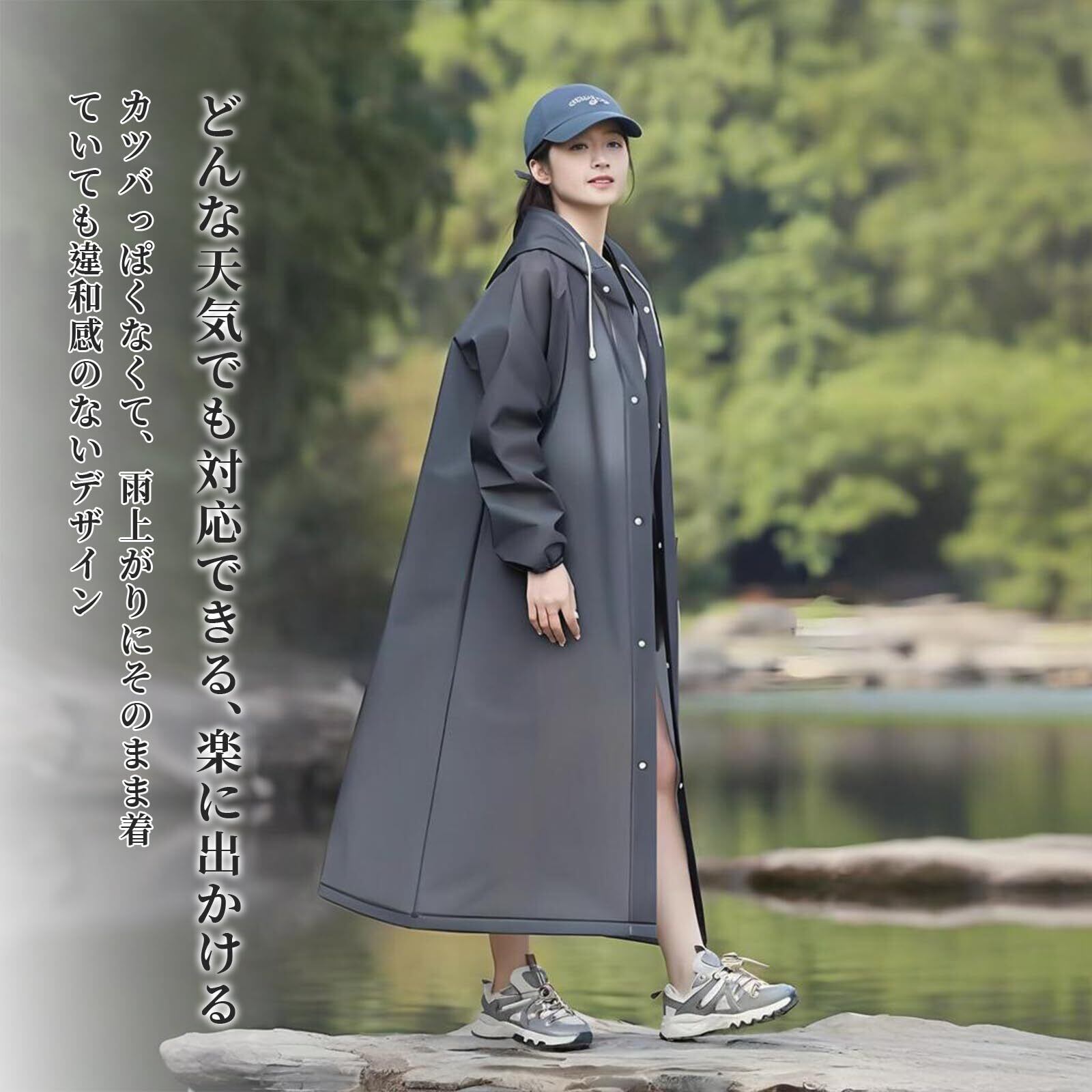 【防水通気】ロングレインポンチョは軽い透明度があり、着心地が良く、おしゃれ。雨具は通気性と防水性もあり、雨の中でも快適でドライな状態を保つことができます。