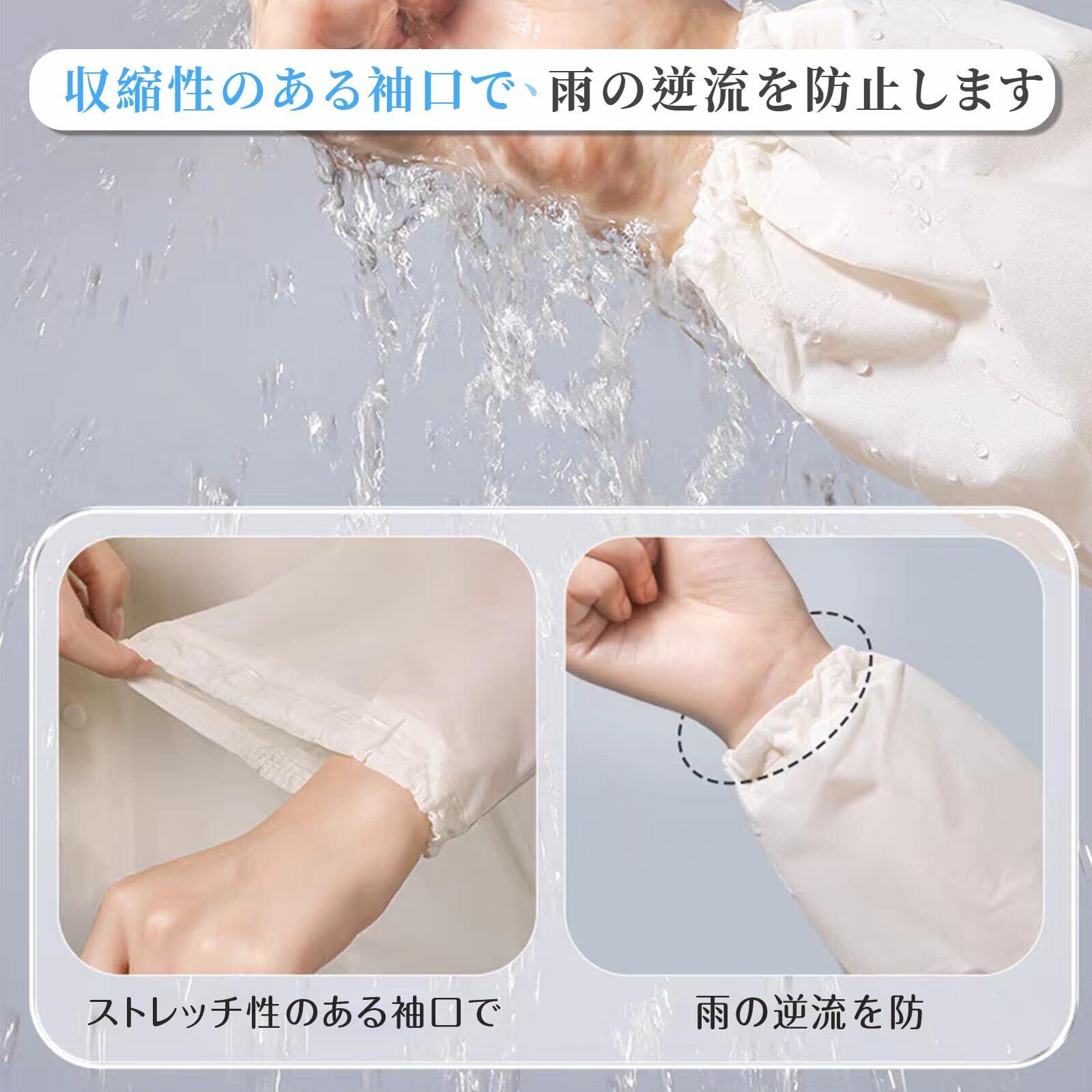 「このレインポンチョは耐水性能が高く、突如として降り出す雨にも安心して対応できます。強力な撥水加工で水滴を弾き、常にドライな状態を保ちますので、どんな天候でも快適に過ごせます。」