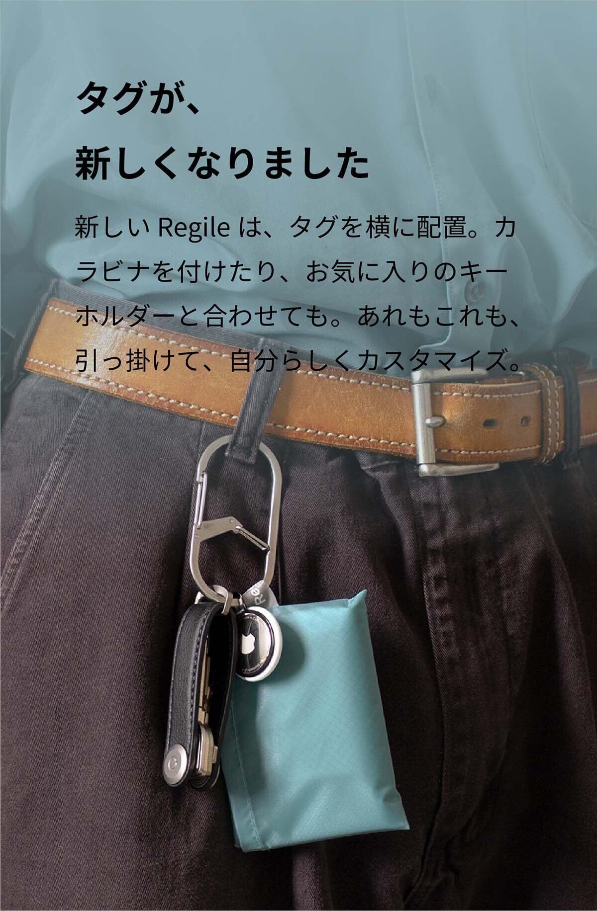 タグが、新しくなりました。 新しいRegileは、タグを横に配置。 カラビナを付けたり、お気に入りのキーホルダーと合わせても。 あれもこれも引っかけて、自分らしくカスタマイズ。