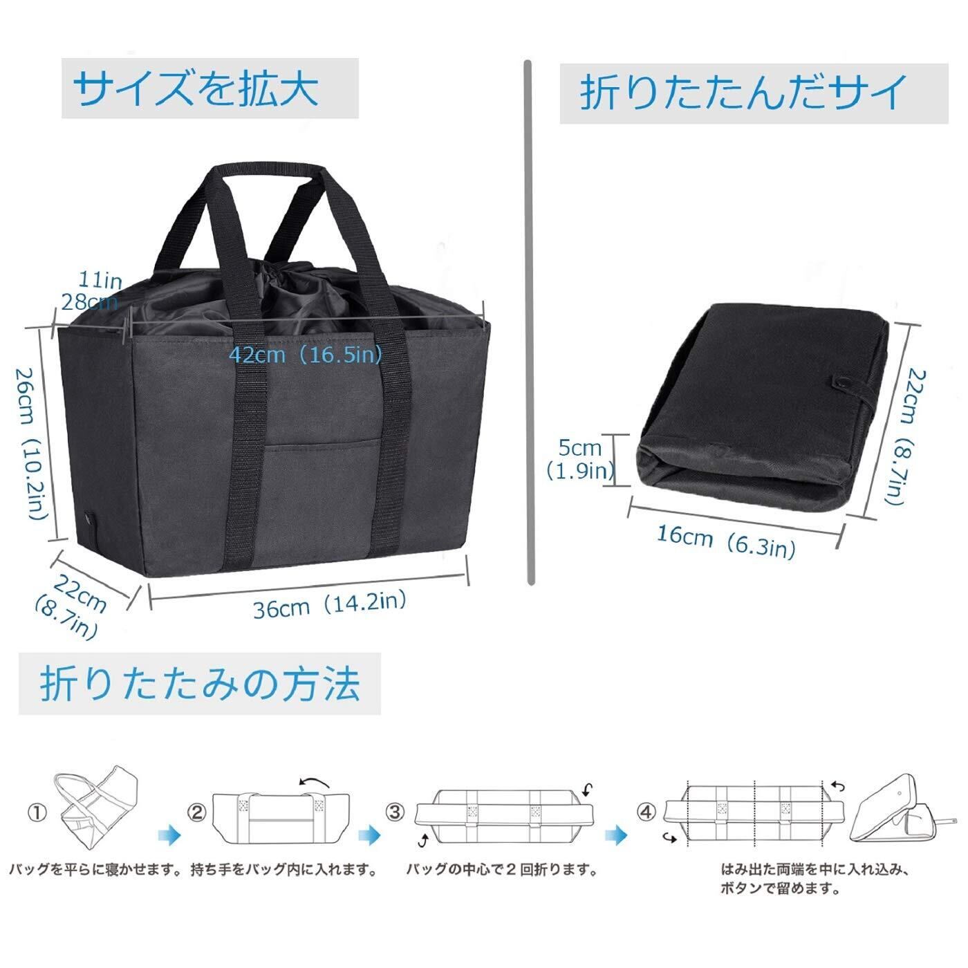 ➤『超大容量』大容量エコバッグサイズは36cm×22cm×26cmで、耐荷重20kg。持ち 手高さは25cm、重い食物または他のものを肩に乗せることができるので持ち運びに 便利です。