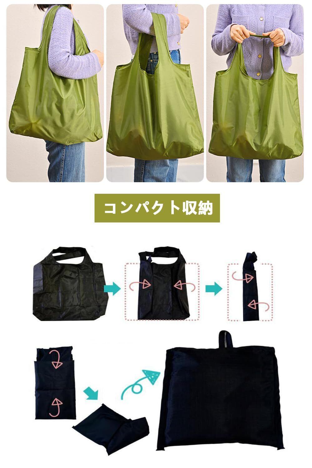 【エコバッグサイズ】折り畳み12.5cm*14cm、広げると53*38*10cm(持ち手部分 約26cm)。容量も大きく、沢山買い物しても余裕を持って入ります。 【エコバッグの特徴】撥水、速乾、丈夫、しわになりにくい、軽量。大容量エコバッグ耐久性に優れ、お手入れも簡単です。洗濯機をサポートして、繰り返し使用。 【耐荷重性25kg】重い食物または他のものを肩に乗せることができるので持ち運びに 便利です。防水素材ポリエステルを使用しており、撥水加工もので、雨の日のお買い物にも気兼ねなく使えます。 【畳むサイズ】小さい裏袋を付き、使用完了の後、財布の大きさに折りたたみ、持ち運びは便利です。いつでも取り出して使います。 【マルチシーン使用】スーパーでの買い物だけなく、ショッピング、出張、旅行、お出かけ、アウトドアなどいろんなシチュエーションで男性も女性もご利用可能です。