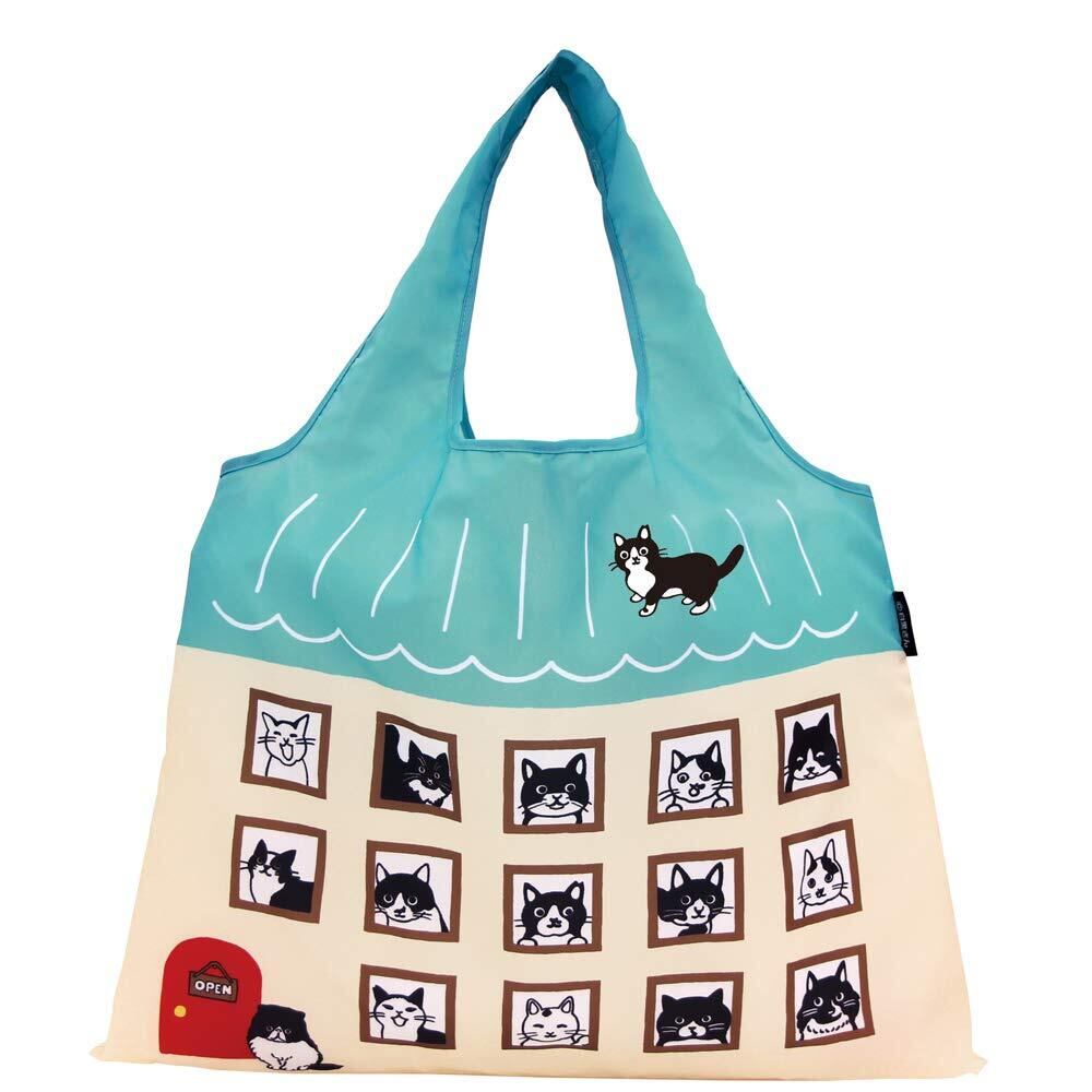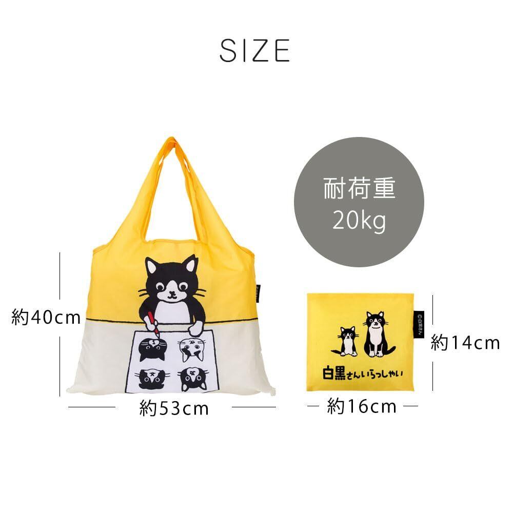 【猫好きさんにおすすめ】かわいい白黒ねこさんが、プリントされたショッピングバッグをお買い物に持っていくと気分があがること間違いなし。容量は、約18リットルと大容量!